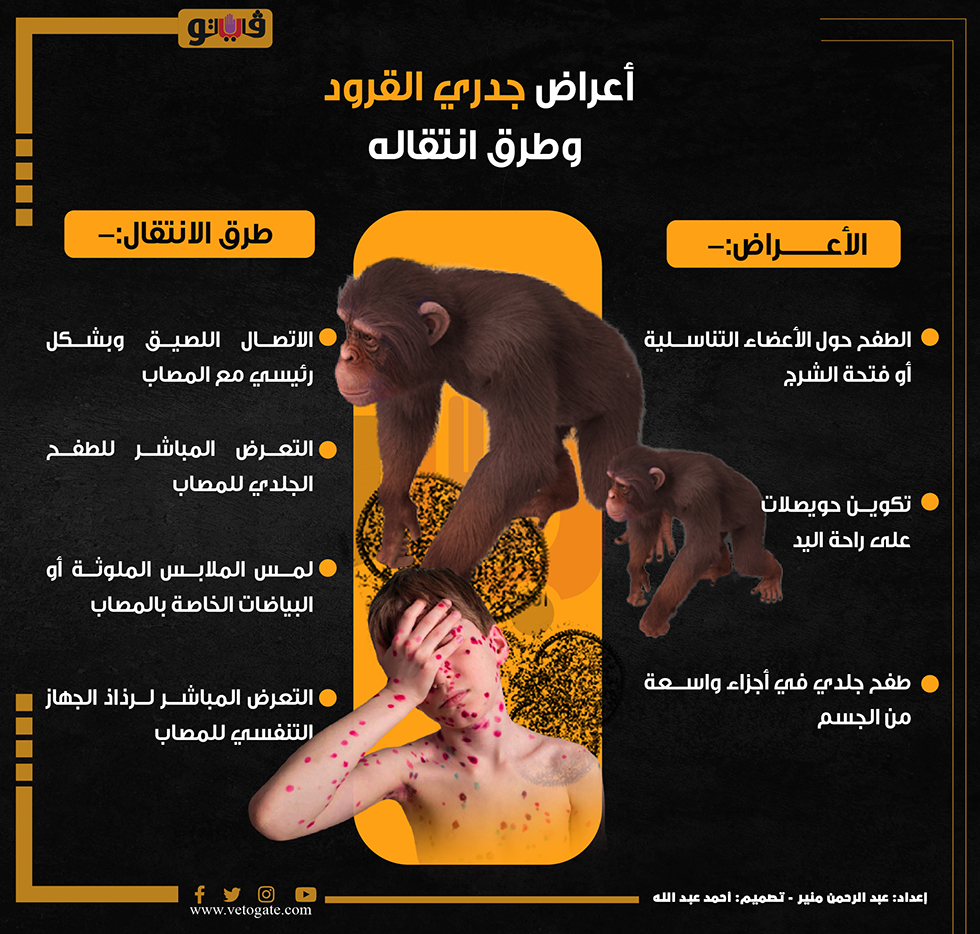 أعراض جدري القرود وطرق انتقاله | انفوجراف الأحد 21/أغسطس/2022 - 04:23 م 8/21/2022 4:23:18 PM جدري القرود عبدالرحمن منير شارك طباعة 18 حجم الخط شارك طباعة جدري القرود اعراض جدري القرود الجدري طفح جلدى