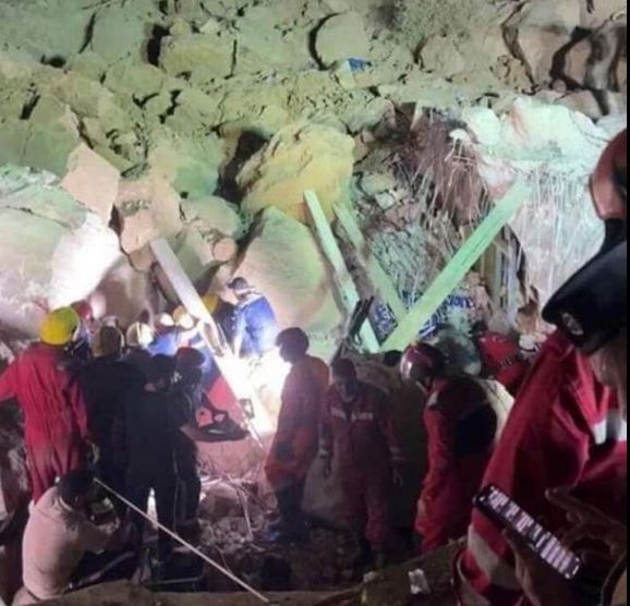 وحتى بعد ظهر الأحد، كانت فرق الدفاع المدني تواصل محاولتها الحفر بالجرارات والمعدات اليدوية لانتشال الاشخاص الذين لا يزالون عالقين في المكان.