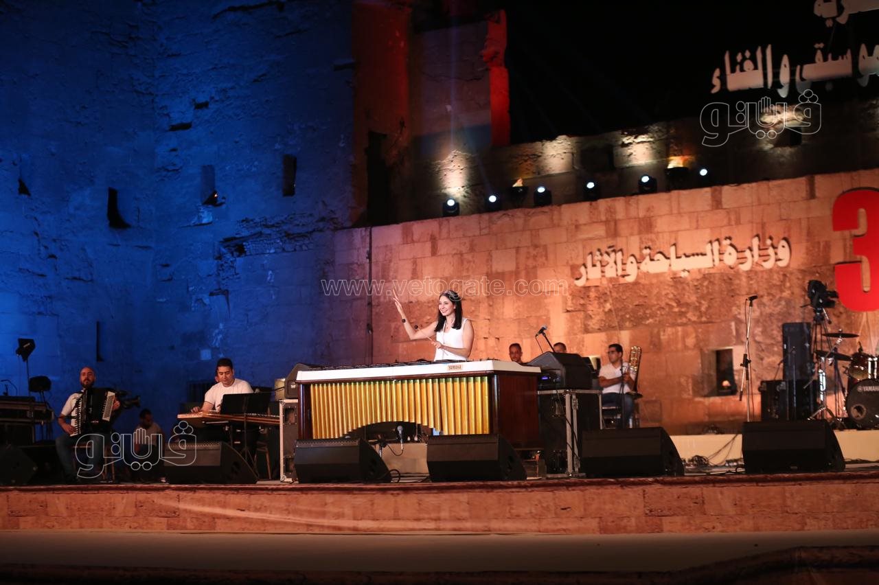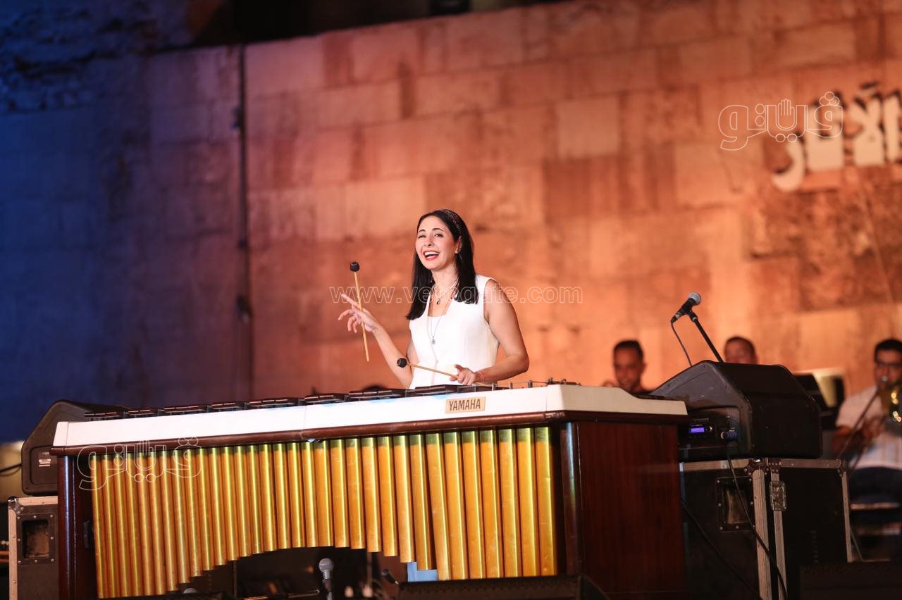 أشعلت عازفة الماريمبا نسمة عبد العزيز خامس ليالي مهرجان قلعة صلاح الدين للموسيقى والغناء.