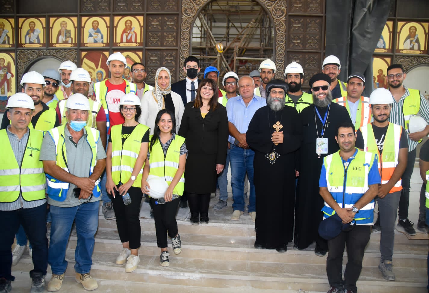 كما تضمنت الجولة زيارة إلى المسجد المقام على 4800 متر وهو خليط بين التراث العثماني والطراز الأندلسي ويتكون من مصلى رئيسي للرجال بمساحة ٦٧٠مترا مربعا، ومُصلى للنساء بالدور الأول بمساحة ١٦٠ مترا مربعا، وعدد٢ قاعة مناسبات بمساحة ٣٤٠ مترا مربعا وبه 44 قبة بالإضافة إلى القبة الكبيرة، ويتكون من 4 مآذن ارتفاع الواحدة منها 45 مترا، كما زار الوفد مشروع تنفيذ كنيسة بمساحة كبير داخل المدينة التراثية، والتي تتسع ل ٨٥٠ مصلي وتم تركيب العديد من الأيقونات.