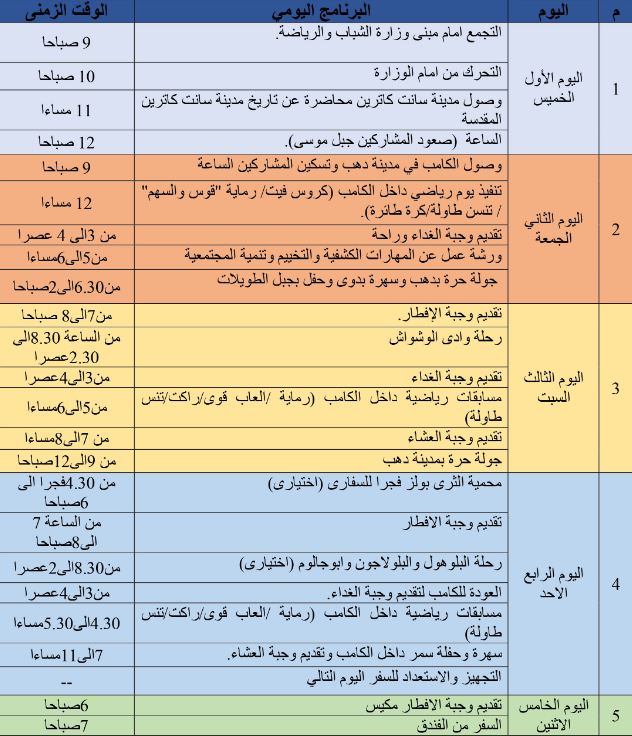 برنامج معسكر وزارة الرياضة في دهب وكاترين