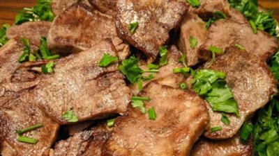 يضاف بعد ذلك اللحم ويحمر على الوجهين، ويتبل بالملح والفلفل الأسود.