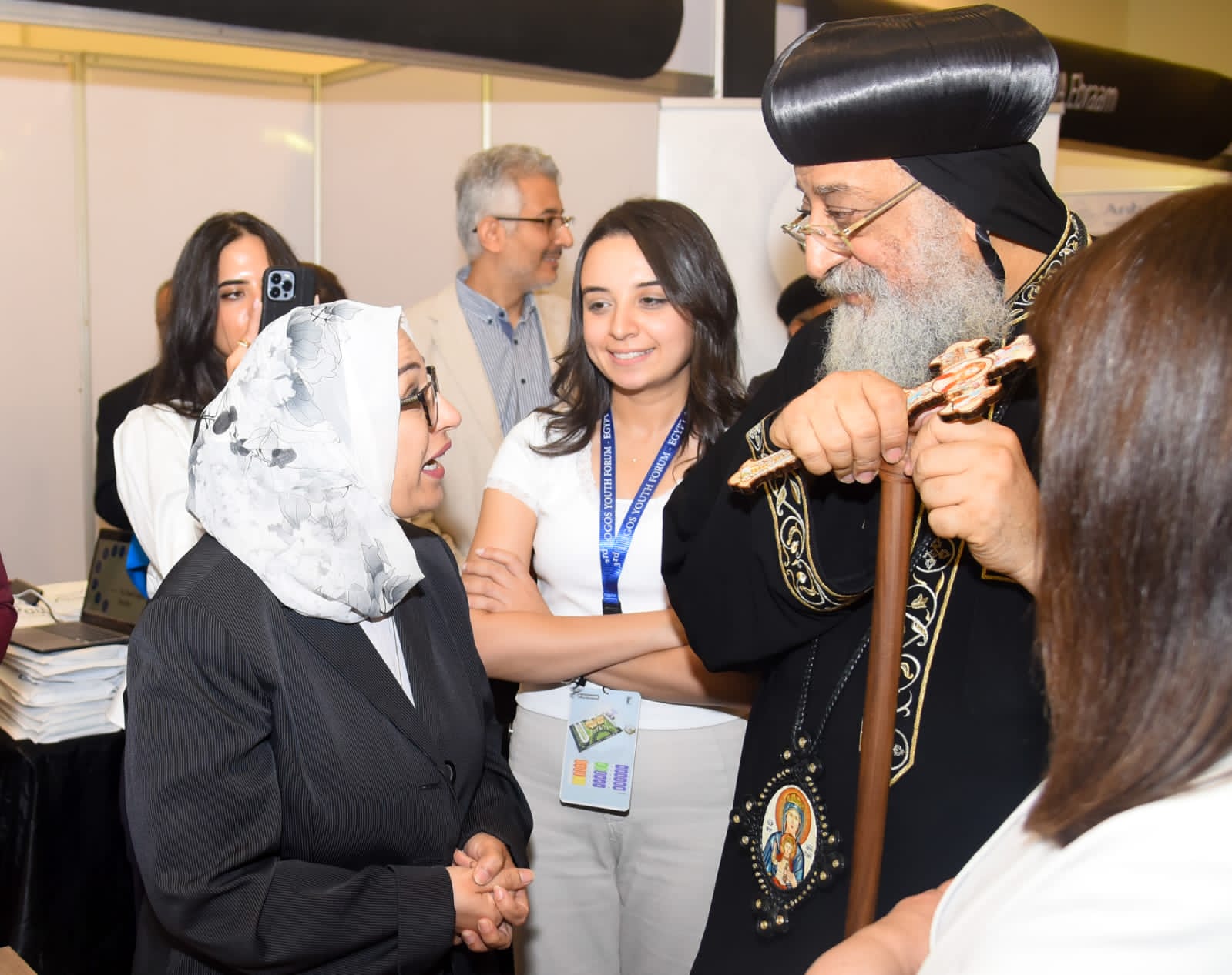 وتفقد قداسة البابا تواضروس الثاني جناح وزارة الهجرة برفقة الوزيرة سها جندي، واستمعا إلى شرح واف عن الملفات والمبادرات التي تقدمها الوزارة الهجرة لشباب مصر بالخارج.