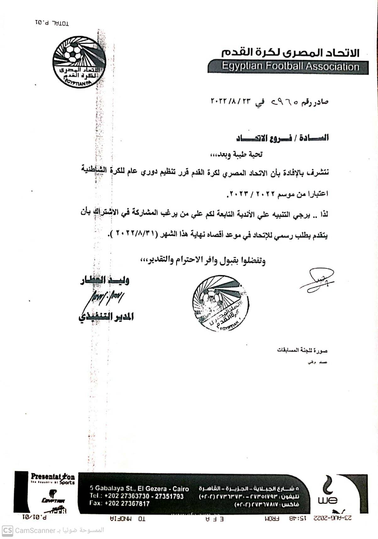 وأكد اتحاد الكرة أن على الأندية الراغبة فى الاشتراك التقدم بطلب رسمى للاتحاد فى موعد أقصاه 31-8-2022.