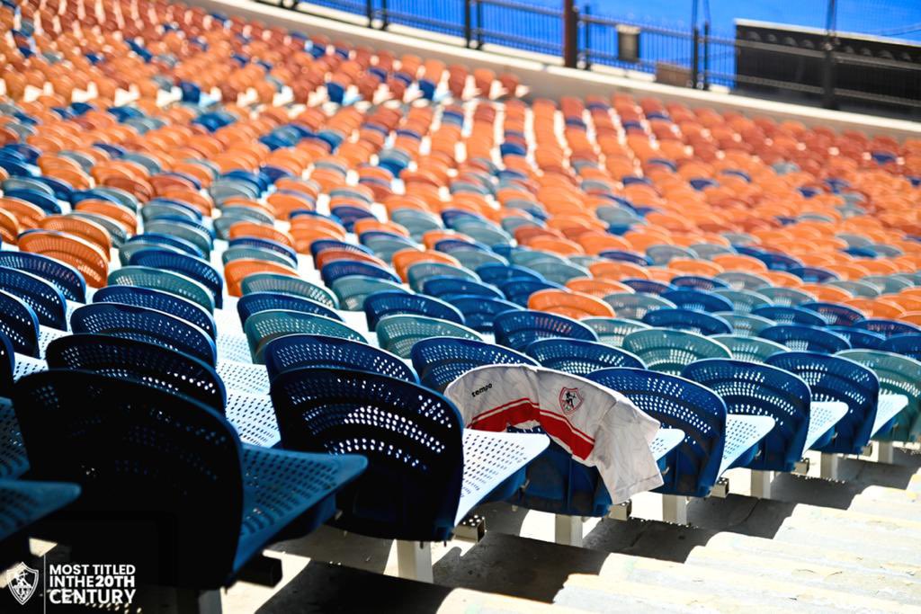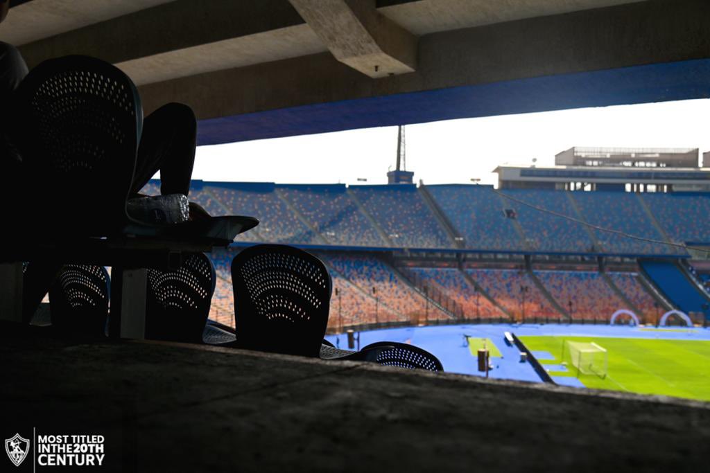وكتبت صفحة الزمالك على الصور: “المسرح الكروي الأكبر في مصر جاهز للاحتفال”.