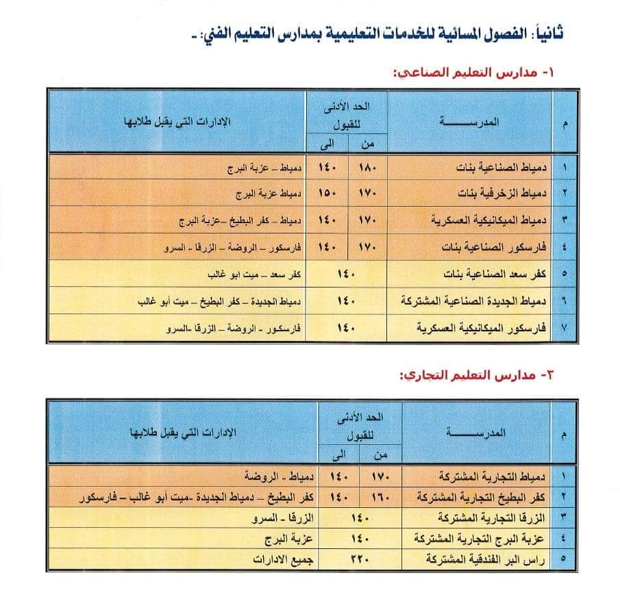 وافقت الأستاذة الدكتورة منال عوض محافظ دمياط على تعديل تنسيق القبول بمدارس المرحلة الثانوية للتعليم الفنى، وذلك للعام الدراسى ٢٠٢٣/٢٠٢٢ وذلك بعدد من المدارس وفقًا للجداول المرفقة...