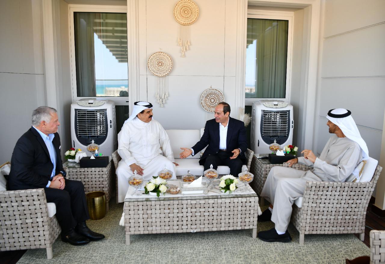 4 صور ترصد لقاء قادة مصر والإمارات والأردن والبحرين اليوم بقصر رئاسة العلمين