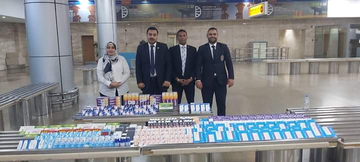 تمكن رجال الجمارك بالإدارة الثانية بمبنى الجمارك رقم ١ بمطار القاهرة الدولي برئاسة محمد حميدة مدير الجمرك من ضبط محاولة تهريب كمية من الأدوية البشرية ومستحضرات التجميل وعدد من الهواتف المحمولة بالمخالفة لأحكام قانون مزاولة مهنة الصيدلة رقم ١٢٧ لسنة ١٩٥٥ وقانون الاتصالات رقم ١٠ لسنة ٢٠٠٣ وقانون الجمارك رقم ٢٠٧ لسنة ٢٠٢٠ وقانون الاستيراد والتصدير رقم ١١٨ لسنة ١٩٧٥.