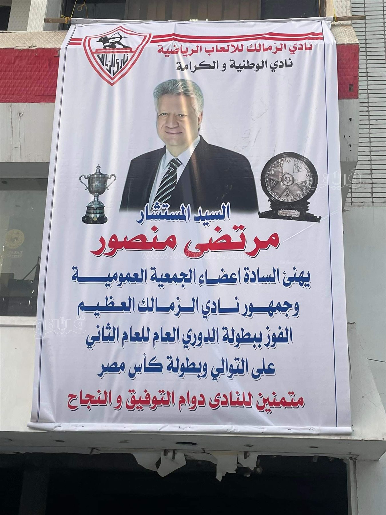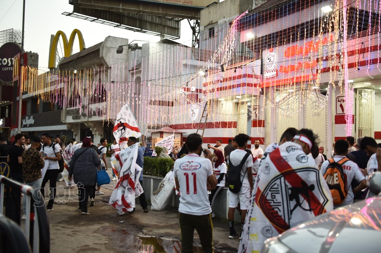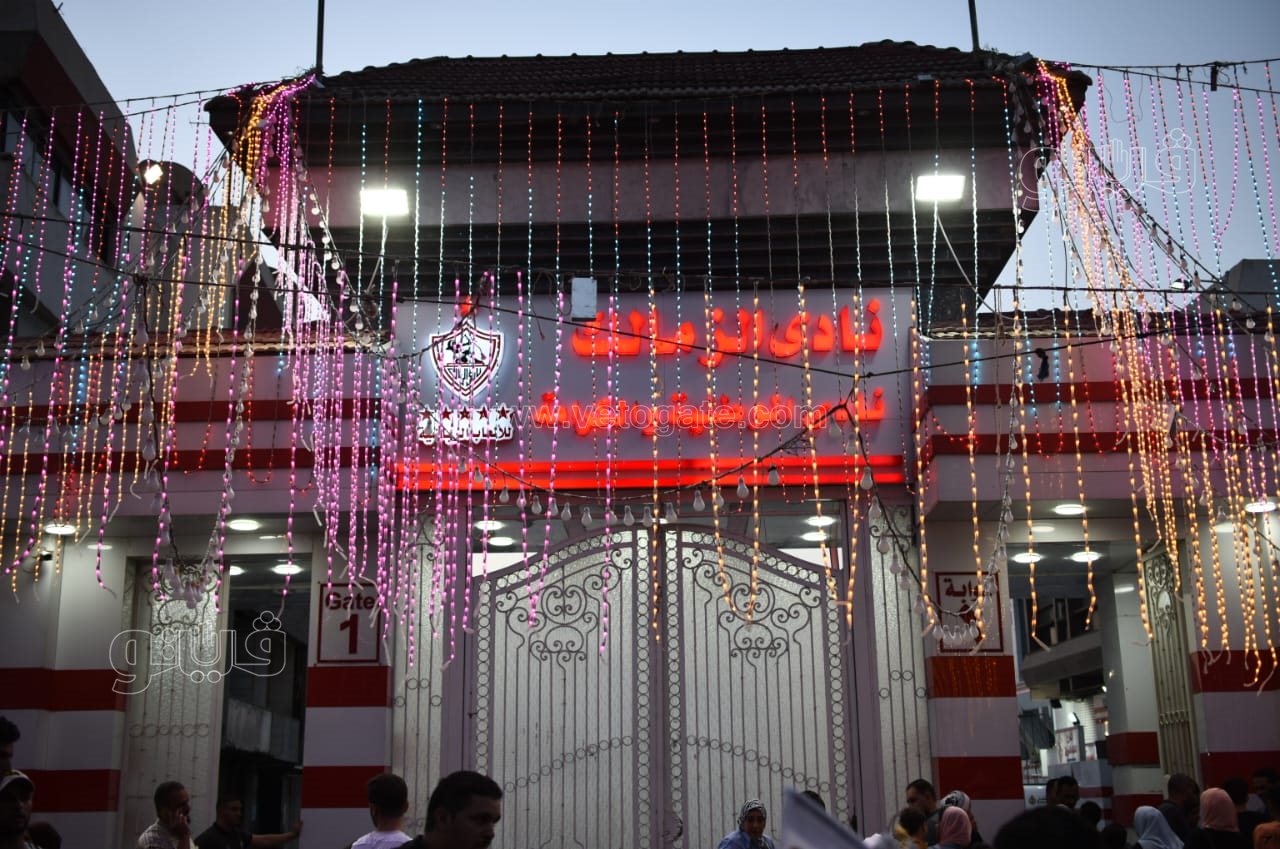 كما استعد نادي الزمالك للاحتفال بالدوري من خلال رفع أعلام نادي البيضاء وصور المستشار مرتضي منصور وتعليق الانوار أمام النادي.