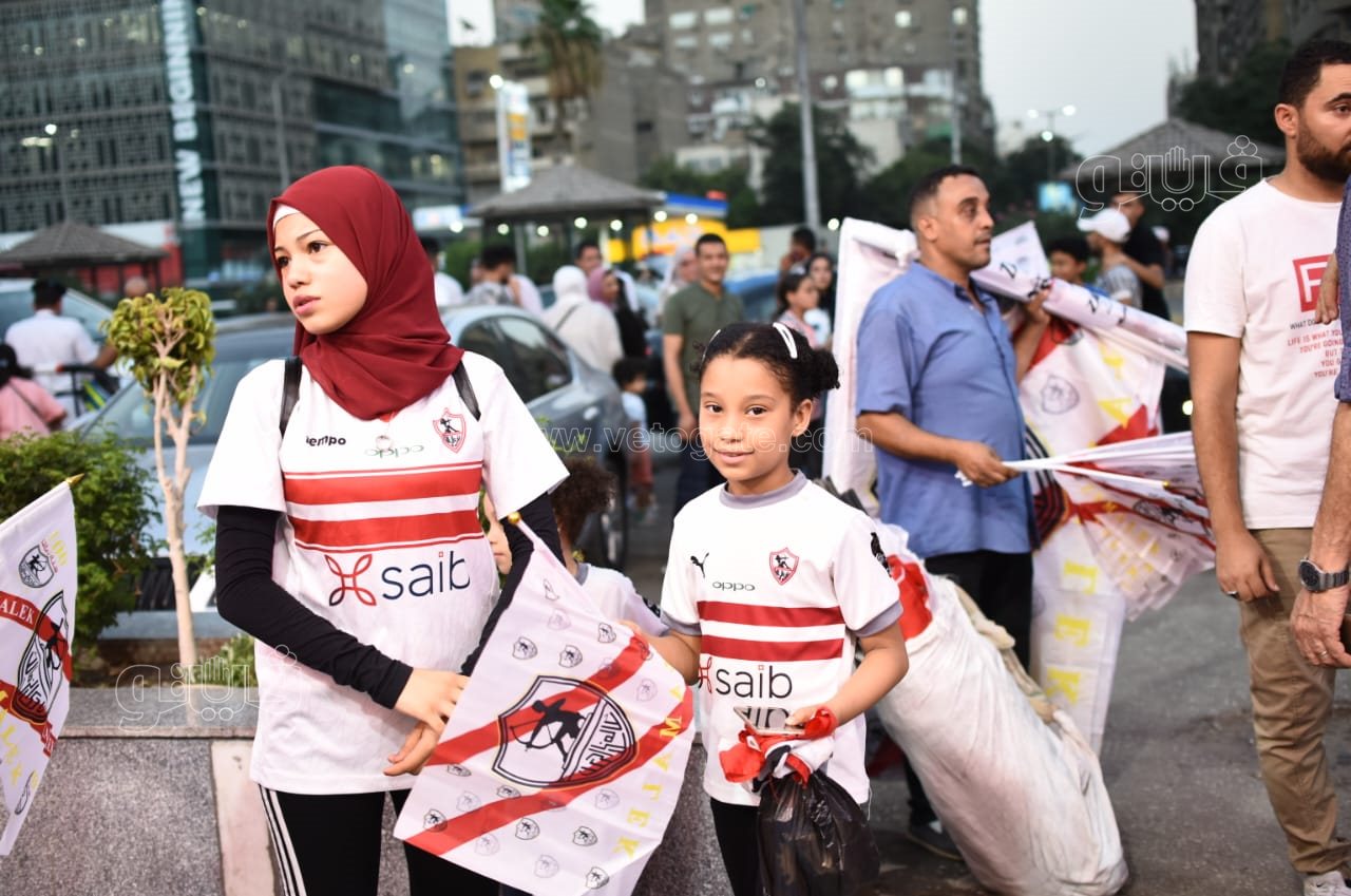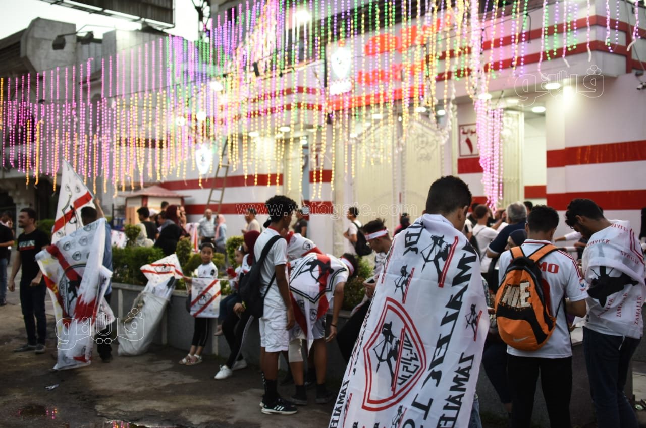 توافد، منذ قليل، جماهير نادي الزمالك بأعلام النادي على مقره بمنطقة ميت عقبة، استعدادا لمتابعة مباراة الفريق الأول لكرة القدم للنادي أمام الاتحاد السكندري مساء اليوم على استاد القاهرة، والاحتفال بالحصول على لقب الدوري الممتاز للعام الثاني على التوالي.