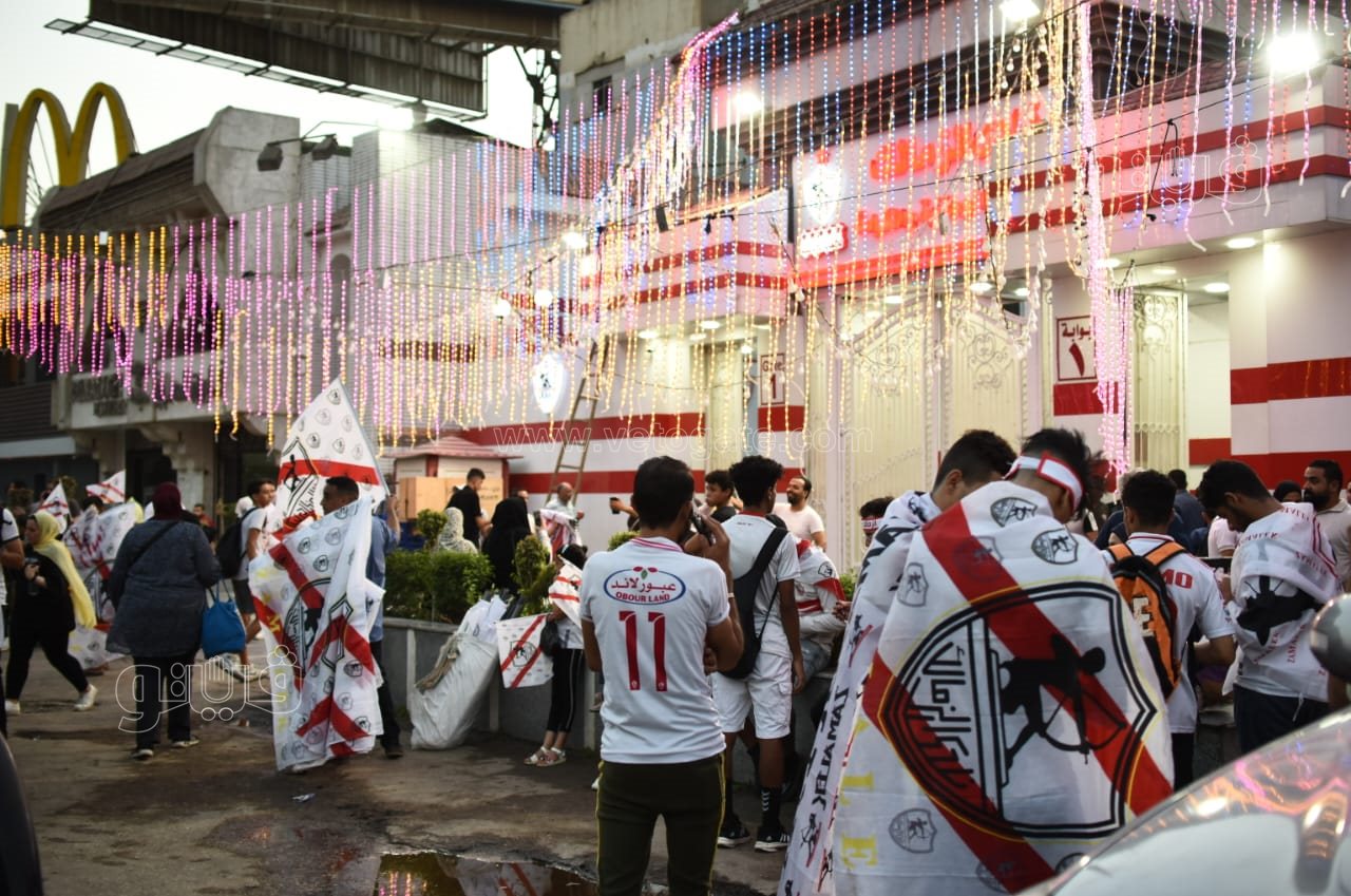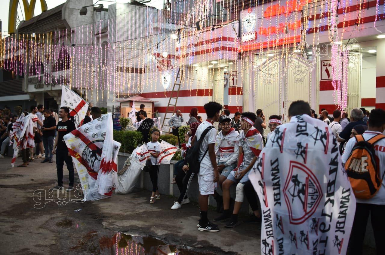 جماهير الزمالك تتوافد على مقاهي سور نادي الترسانة لمشاهدة مباراة الاتحاد| صور