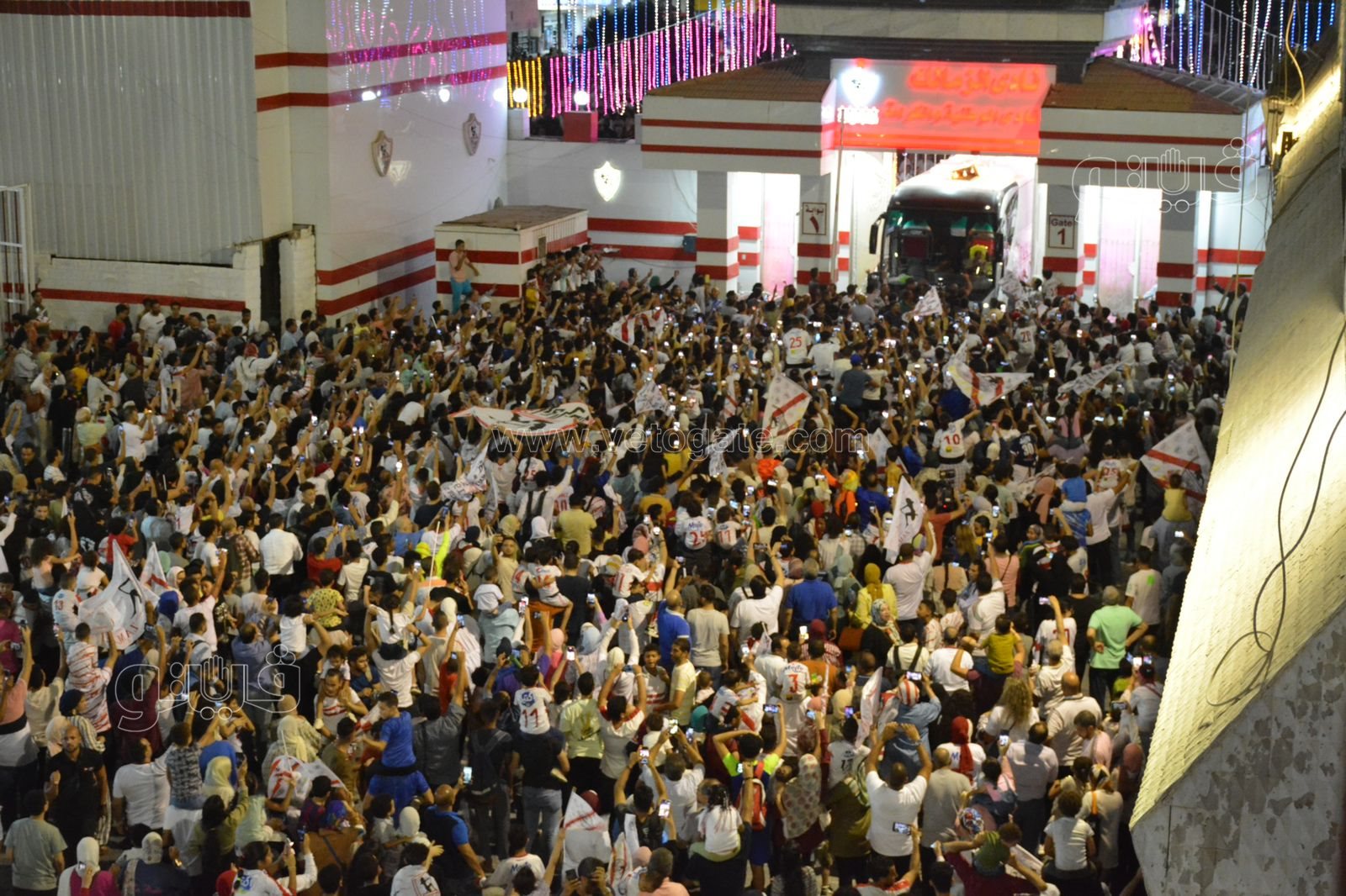 وكان أتوبيس لاعبي الزمالك المكشوف، وصل إلى مقر النادي بمنطقة ميت عقبة للاحتفال مع الجماهير بالفوز بدرع الدوري الممتاز 2022 للعام الثاني على التوالي.