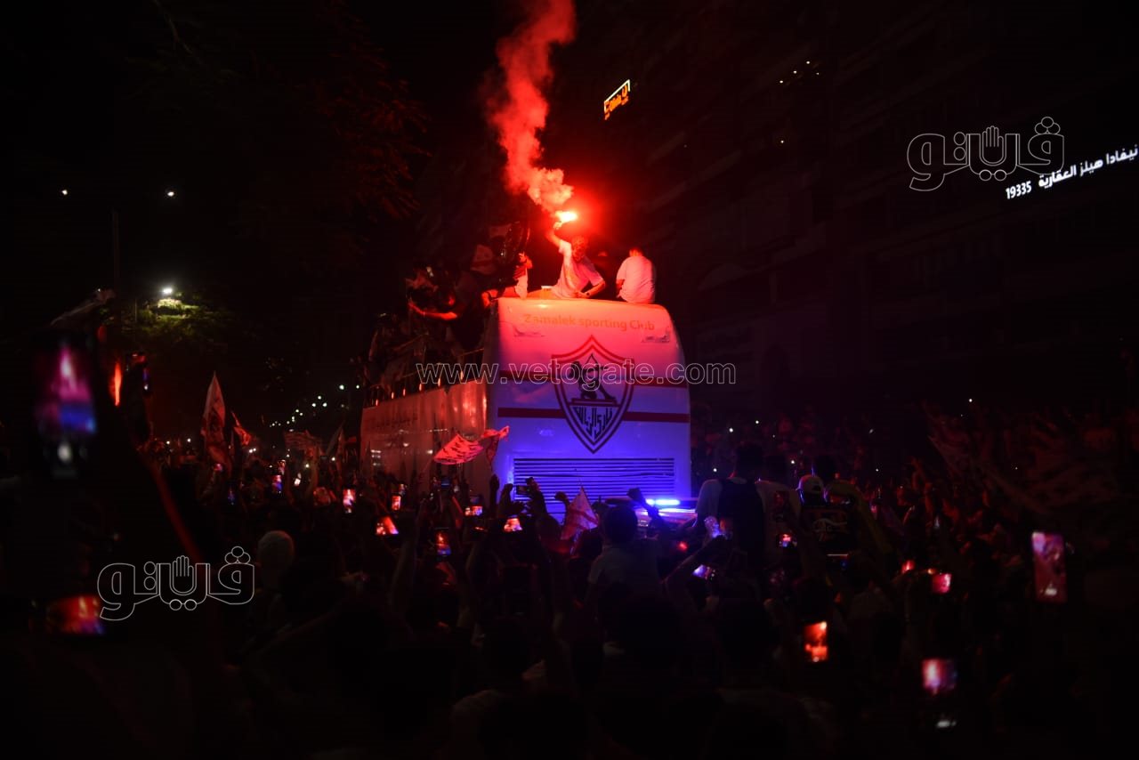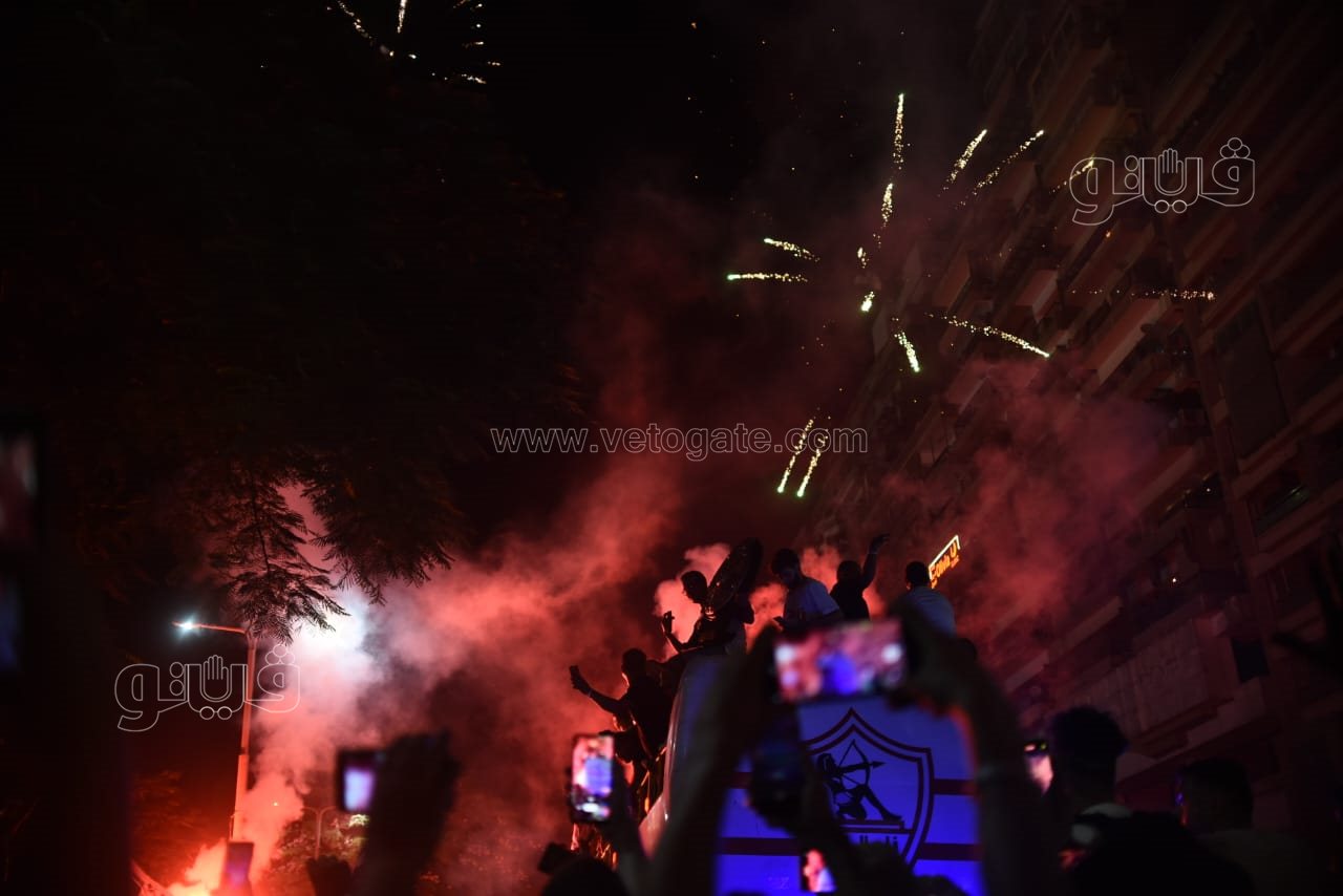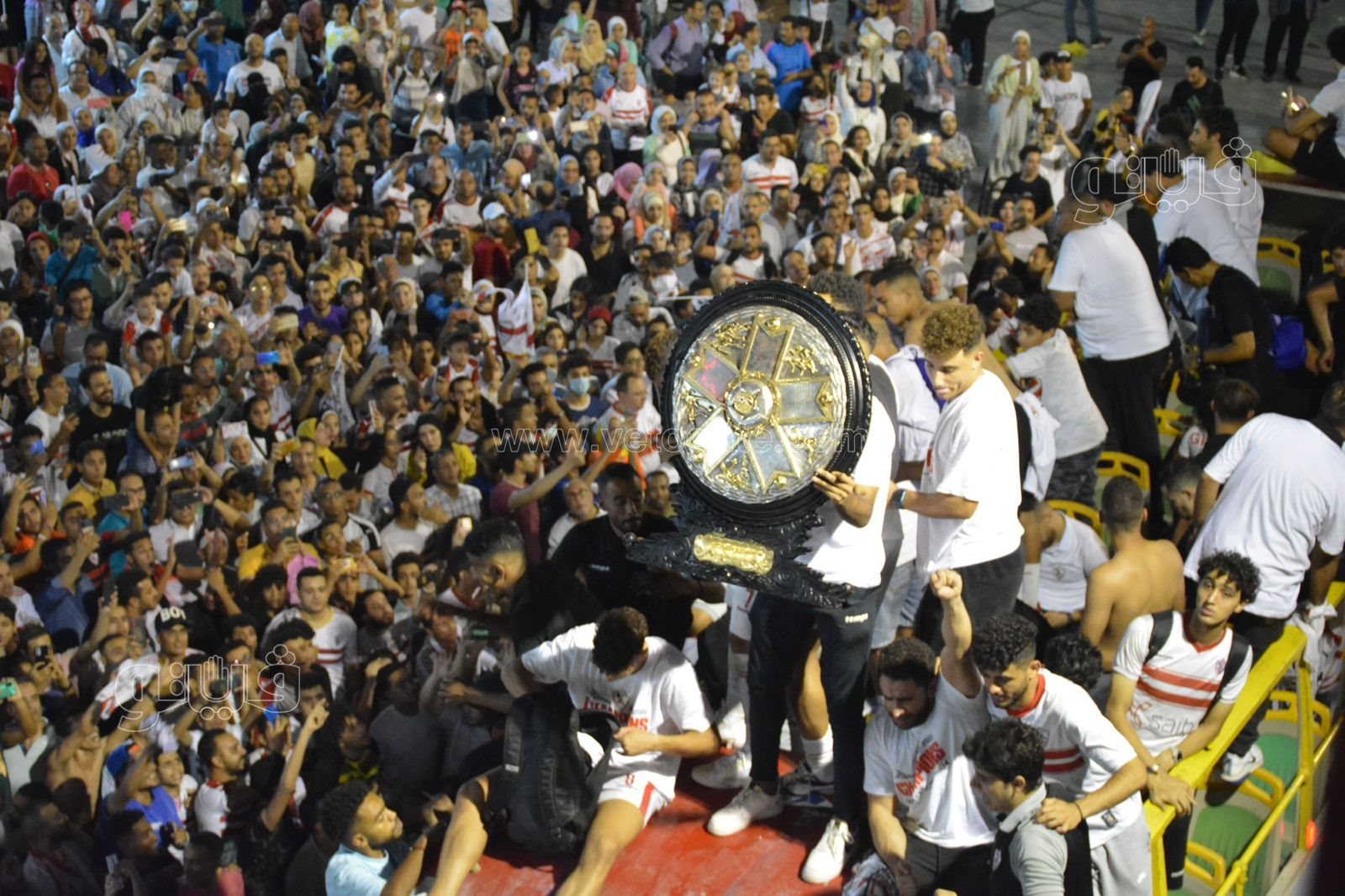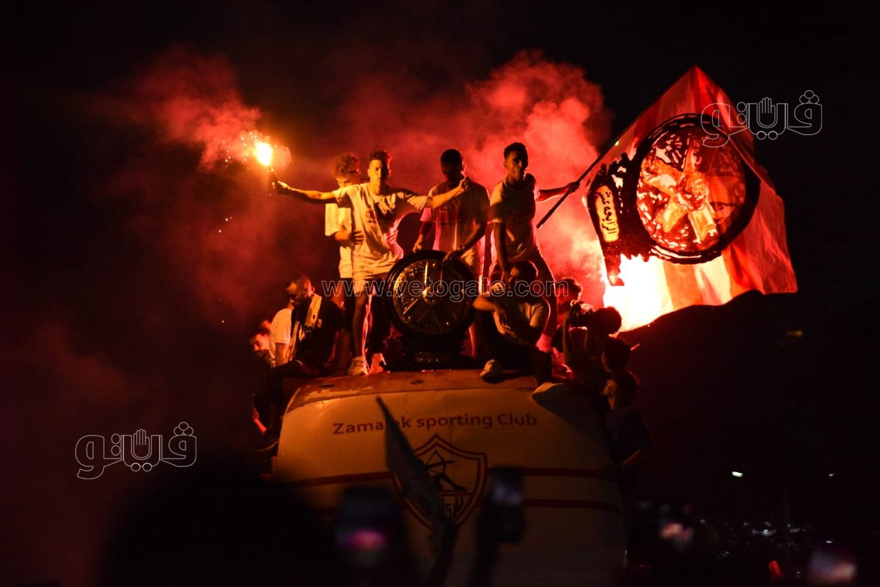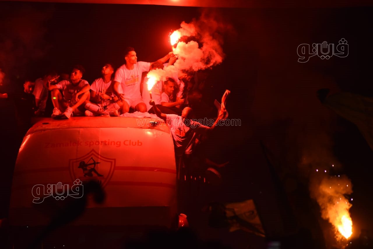 احتفل لاعبو نادي الزمالك مع الجماهير أمام وداخل القلعة البيضاء بميت عقبة بالتتويج بدرع الدوري المصري الممتاز، بالأغاني والهتافات، وسط إطلاق الألعاب النارية والشماريخ من أعلى أتوبيس الفريق.