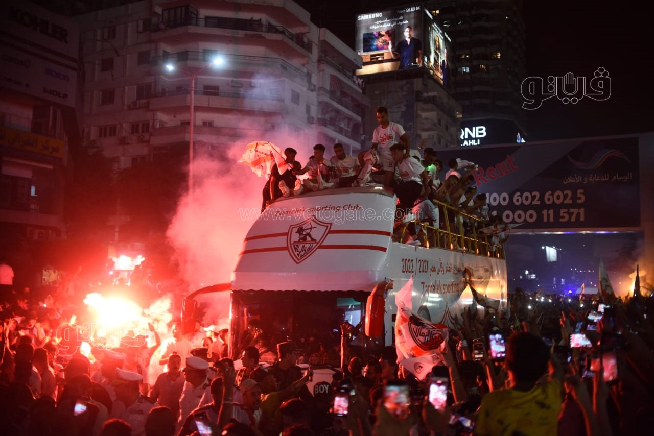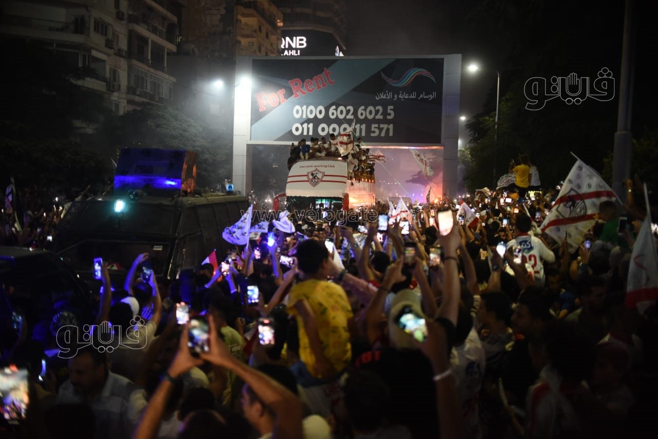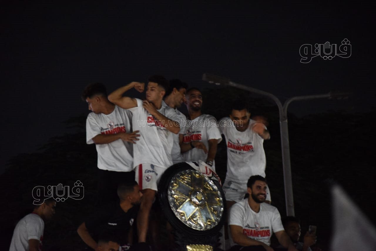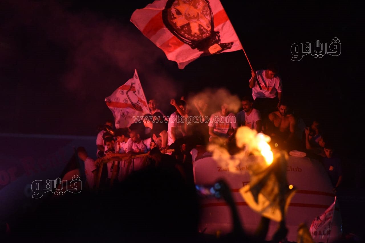 احتفل لاعبو نادي الزمالك مع الجماهير أمام وداخل القلعة البيضاء بميت عقبة بالتتويج بدرع الدوري المصري الممتاز، بالأغاني والهتافات، وسط إطلاق الألعاب النارية والشماريخ من أعلى أتوبيس الفريق.