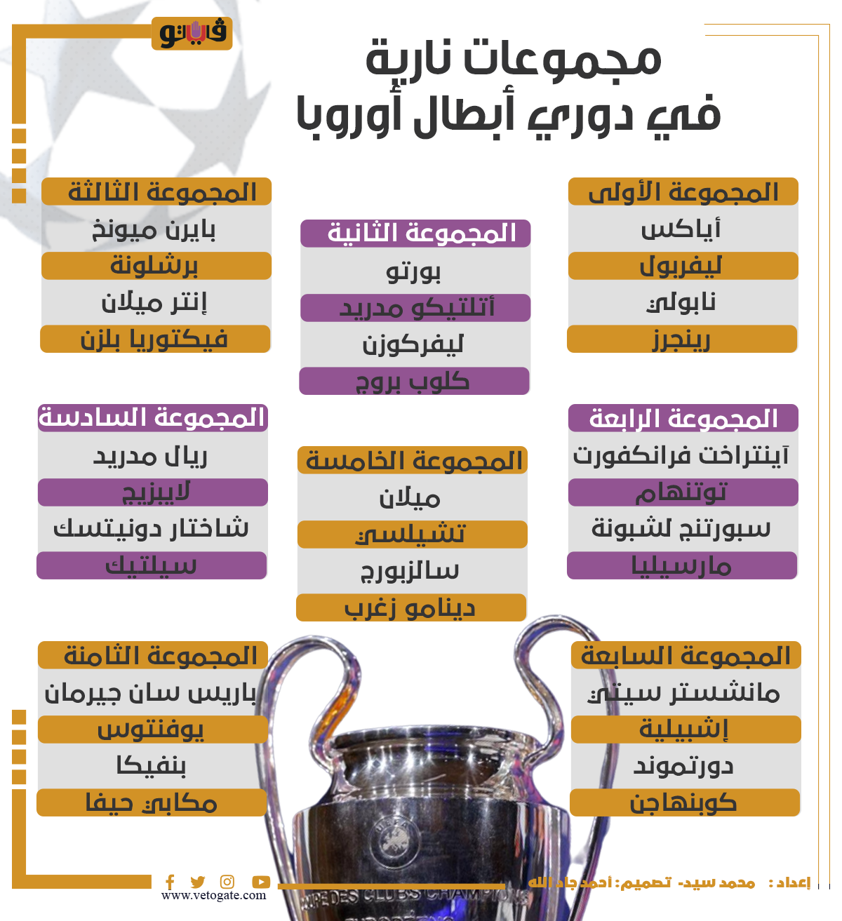 مجموعات نارية في دوري أبطال أوروبا|إنفوجراف الخميس 25/أغسطس/2022 - 07:32 م 8/25/2022 7:32:19 PM دوري أبطال أوروبا محمد سيد شارك طباعة 18 حجم الخط شارك طباعة أتلتيكو مدريد إنتر ميلان باريس سان جيرمان بايرن ميونخ برشلونة دوري ابطال اوروبا ريال مدريد ليفربول مانشستر سيتي