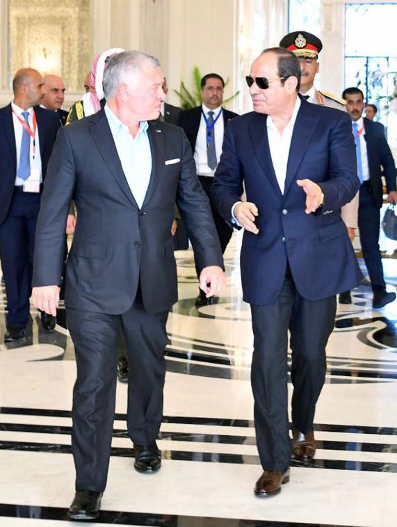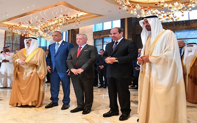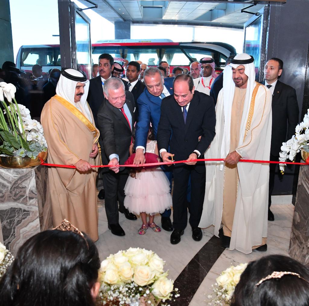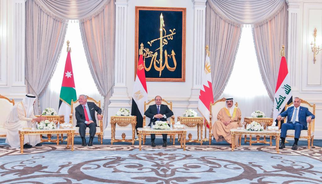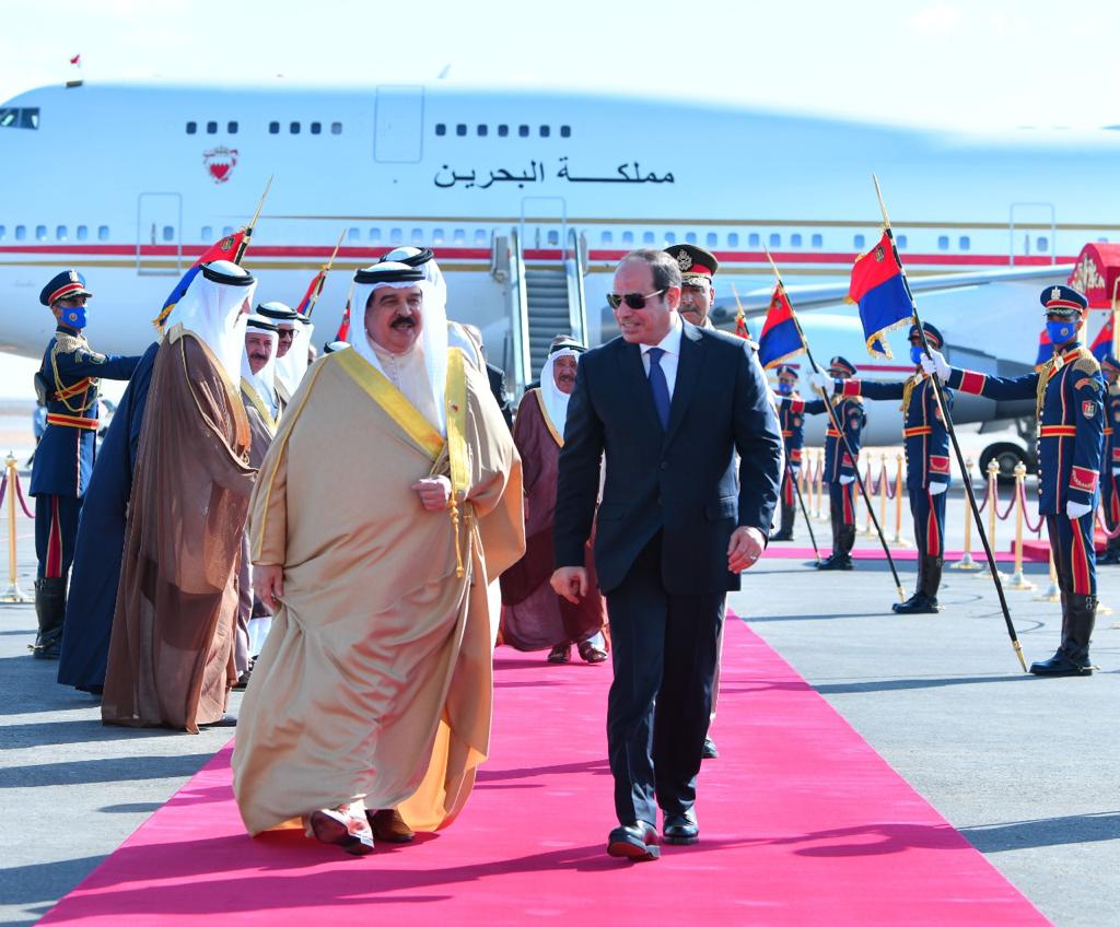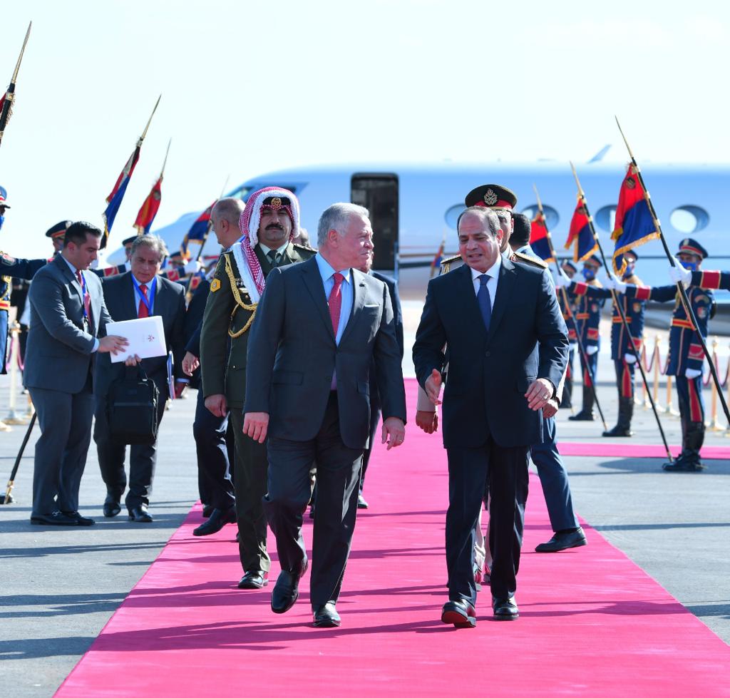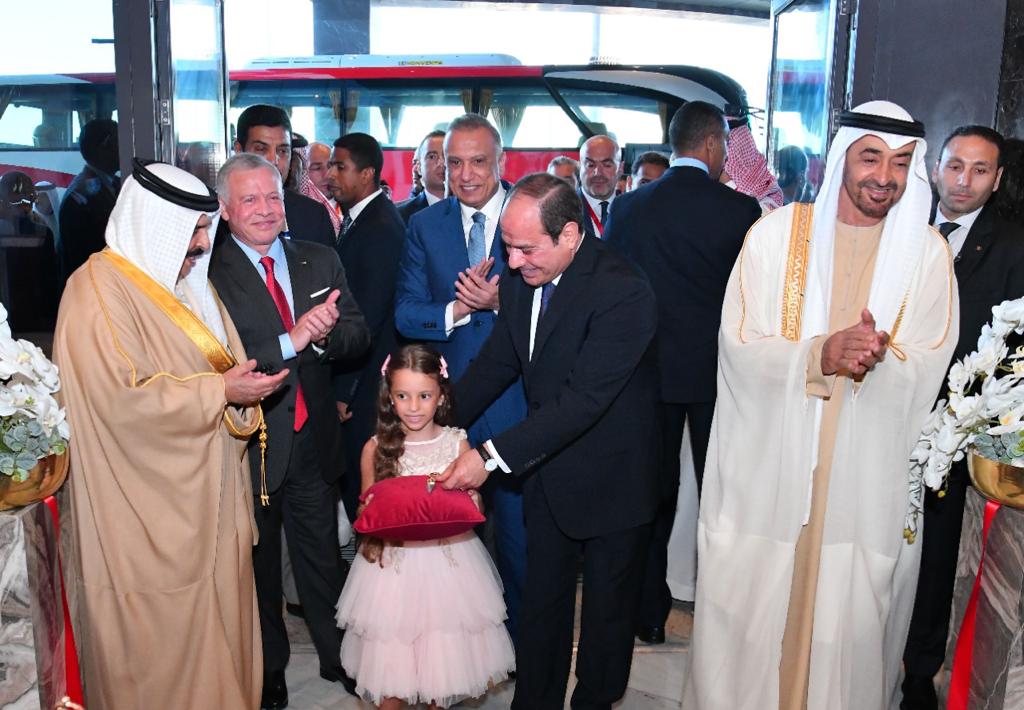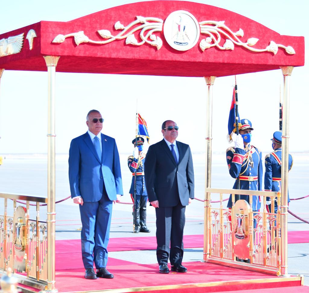 كما استقبل الرئيس عبد الفتاح السيسي بمطار العلمين وبحضور الشيخ محمد بن زايد آل نهيان رئيس الامارات، كلًا من الملك عبد الله الثاني بن الحسين، ملك الأردن، والملك حمد بن عيسى آل خليفة، ملك البحرين، وفخامة السيد مصطفى الكاظمي، رئيس الوزراء العراقي".