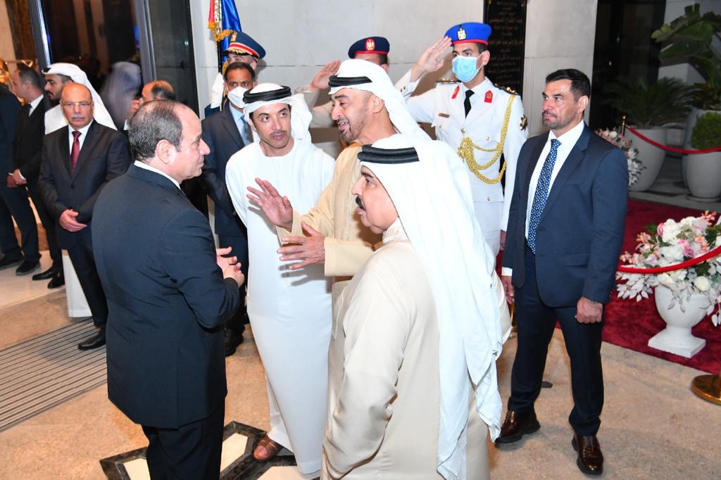 - استقبل الرئيس بمطار العلمين وبحضور الشيخ محمد بن زايد آل نهيان رئيس الامارات، كلًا من الملك عبد الله الثاني بن الحسين، ملك الأردن، والملك حمد بن عيسى آل خليفة، ملك البحرين، وفخامة السيد مصطفى الكاظمي، رئيس الوزراء العراقي