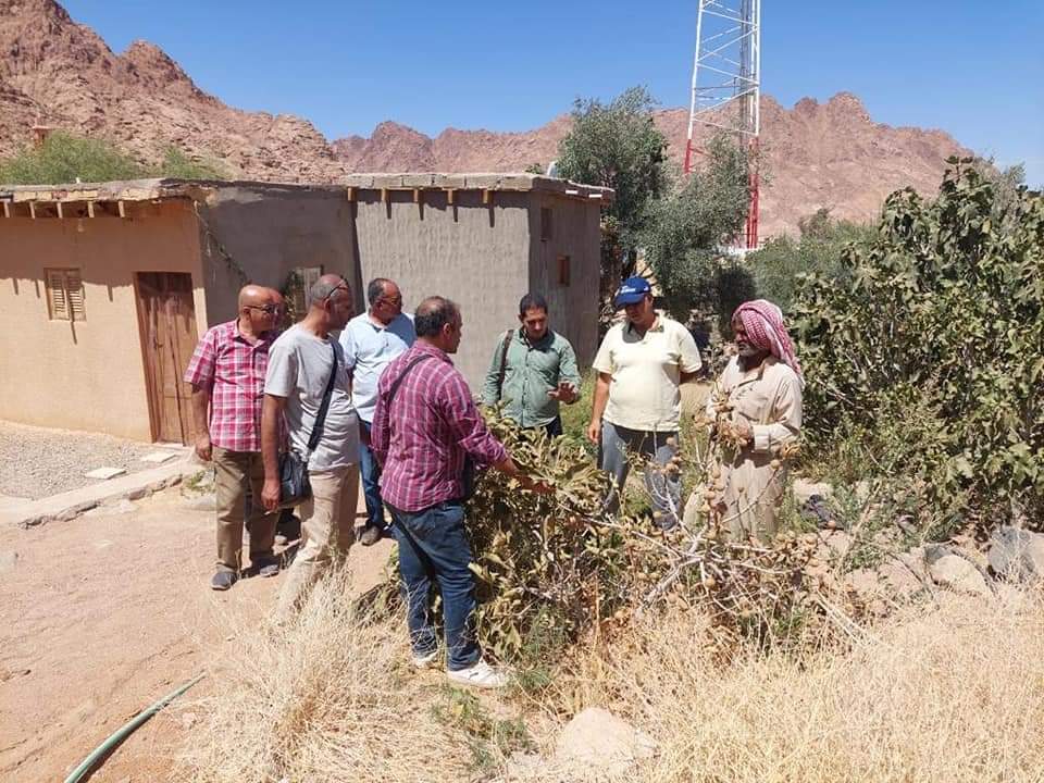 كما قام أساتذة كلية الزراعة بزيارة المزارع والحقول الزراعية، وعقد ندوات الإرشاد الزراعي لأصحاب المزارع والمزارعين، والرد علي الأسئلة وطرق حل المشكلات والممارسات الزراعية الخاطئة بالنسبة لمحصول الزيتون واللوز والمشمش والكمثري والتين الشوكي والبرشومي والتفاح، وكانت أهم المشاكل التى تواجه هذه الزراعات انتشار أمراض التصمغ وضعف الثمار وصغر الحجم وقلة مياه الري، فتم التوصية باتباع الممارسات الزراعية السليمة والاهتمام بالري والتسميد العضوي والمبيدات الصديقة للبيئة.