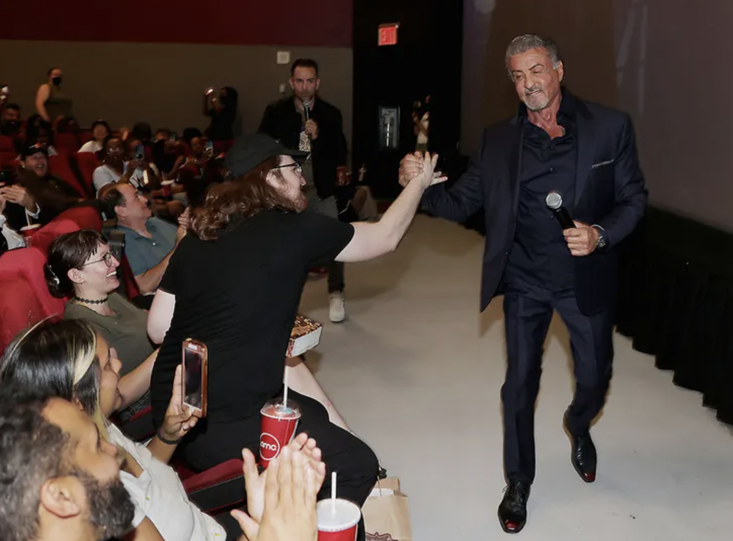 وظهر سيلفستر ستالون في مسرح AMC Empire 25 في ولاية نيويورك الأمريكية، بشكل مفاجئ وسط تحيات وصيحات الجماهير التي استقبالته بحرارة.