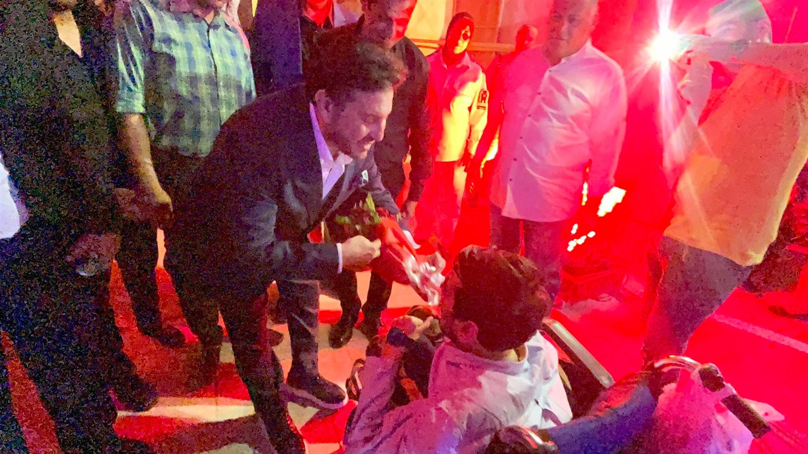 واستقبل الشابُ الفنانَ الكبير خلال دخول الحفل ببوكيه ورد خاص، والذي استقبله الفنان بحفاوة بالغة معبِّرًا عن شكره له.