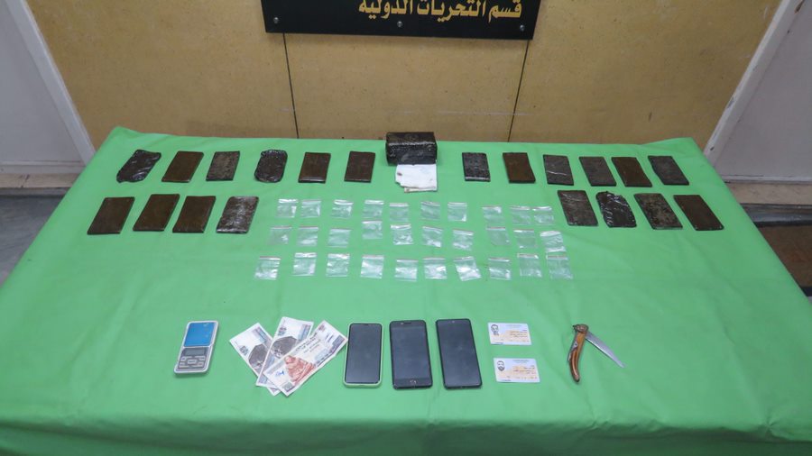 ضبط (عاطل، له معلومات جنائية، مقيم بدائرة قسم شرطة الجناين) حال تواجده بالمنطقة محل سكنه، وبحوزته (كمية من مخدر الهيدرو وزنت 3 كيلو جرام – مبلغ مالى – هاتف محمول).