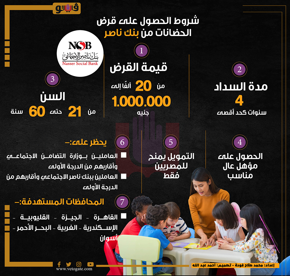 شروط الحصول على قرض الحضانات من بنك ناصر | إنفو جراف الأحد 28/أغسطس/2022 - 11:31 ص 8/28/2022 11:31:02 AM بنك ناصر الاجتماعي محمد صلاح فودة شارك طباعة 18 حجم الخط شارك طباعة التضامن الاجتماعي بنك ناصر الاجتماعي شروط الحصول على قرض الحضانات قرض الحضانات من بنك ناصر وزارة التضامن الاجتماعي