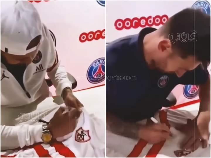تداول رواد السوشيال ميديا عبر موقع التواصل الاجتماعي فيس بوك، مقطعا يوضح توقيع الأرجنتيني ميسي والبرازيلي نيمار لاعبي باريس سان جيرمان، على تيشيرت الزمالك.