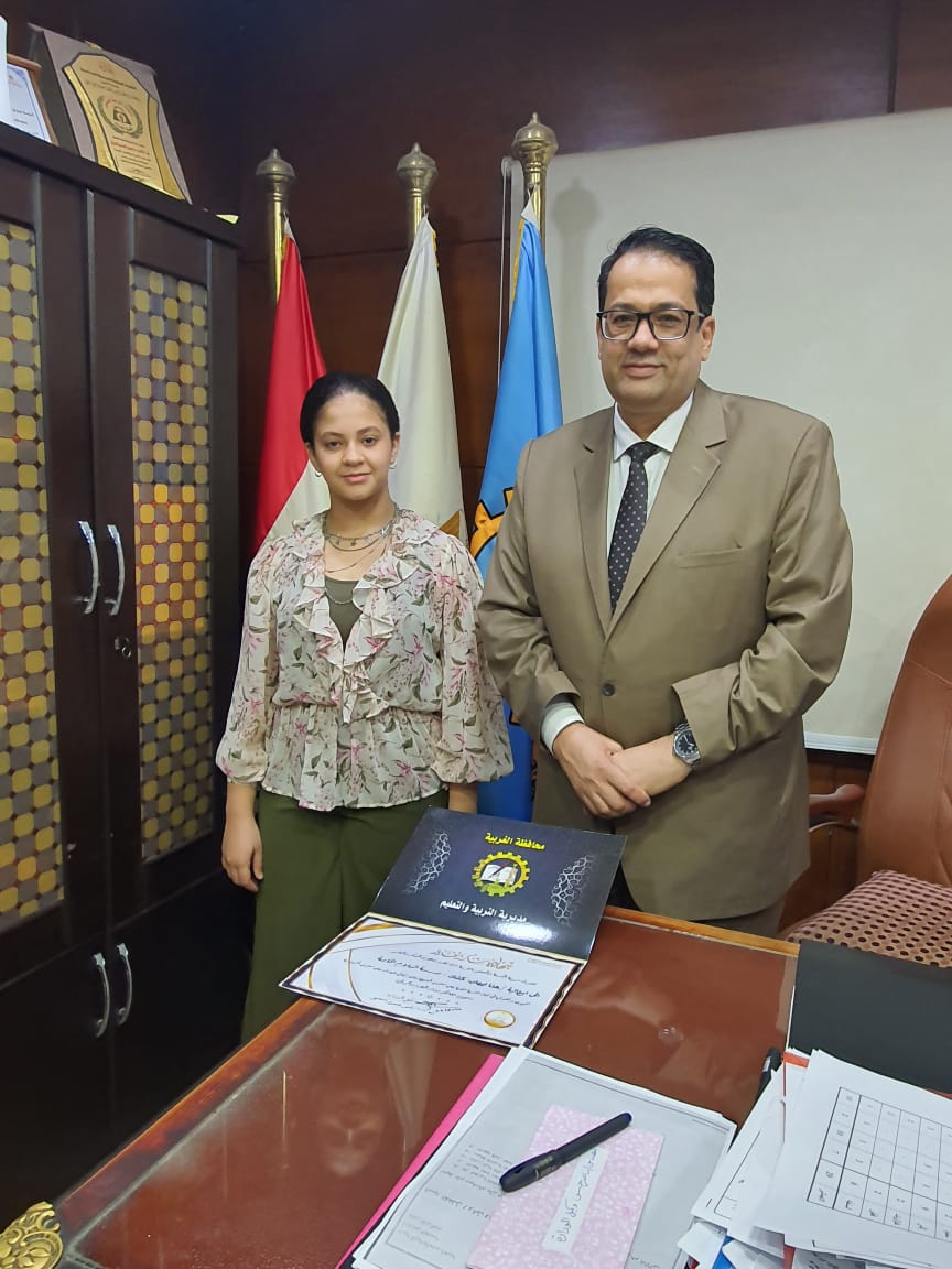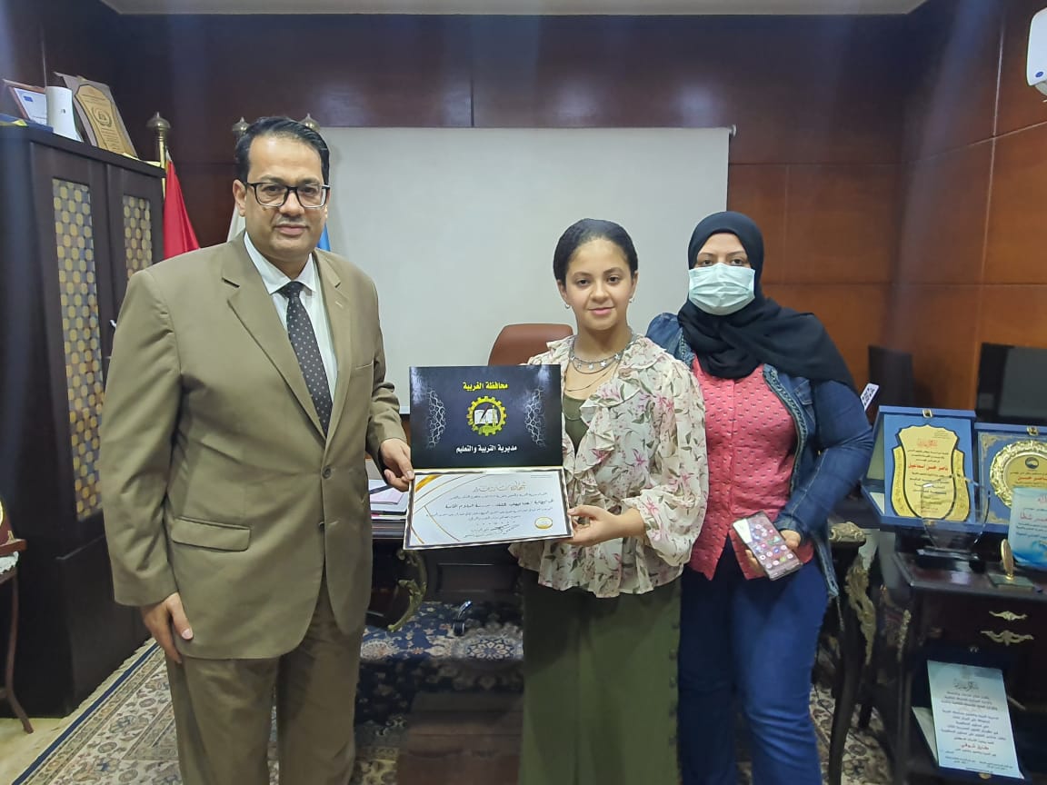 رسمت صورة الرئيس والمحافظ.. تعليم الغربية يكرم الطالبة هنا الفائزة بالعديد من الجوائز الفنية|صور
