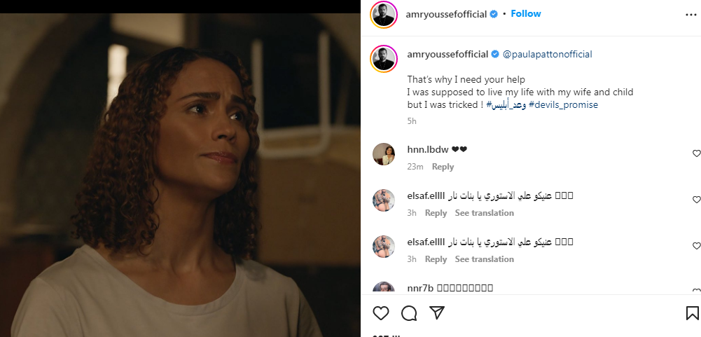 الثمن، يبقي لازم ترده !"، أما صورة عمرو يوسف فقد أرفق تعليق “محدش ضربك على ايدك، واللا انت فاكر اللحظة دي ببلاش... كله بثمنه يا حبيبي #وعد_ابليس”، وكتب تعليق على صورة نشرها للفنان يعقوب الفرحان قائلًا “ براحة على نفسك.. الحاجات الجديدة بتأخد وقت عشان الناس تستوعبها وأنا واثق إن ده هيبقى إنجاز عظيم #في_طريقة_تانيه#وعد_ابليس”.