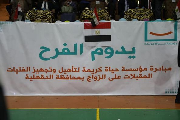 - نظمت مؤسسة حياة كريمة خلال الساعات الماضية احتفالية لتجهيز 100 عروسة من الفتيات المقبلات على الزواج تحت شعار"يدوم الفرح"، وذلك بحضور الدكتور أيمن مختار محافظ الدقهلية ومحمد طاهر رئيس القطاع التنفيذي لمؤسسة حياة كريمة وخالد جمال مدير القطاع التنفيذي بمؤسسة حياة كريمه والمهندس محمد سامي منسق عام مبادرة حياة كريمه بالدقهلية، والدكتورة أمينه شلبي مقرر المجلس القومي للمرأة بالدقهلية ووكلاء الوزارة ورؤساء المراكز والمدن والاحياء، ومنسقى ومتطوعى مؤسسة حياة كريمة بمحافظة الدقهلية.