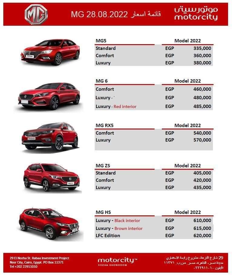 ويستعرض التقرير التالي أسعار سيارات MG بعد الزيادة الثانية خلال شهر أغسطس وهي كالتالي:-
