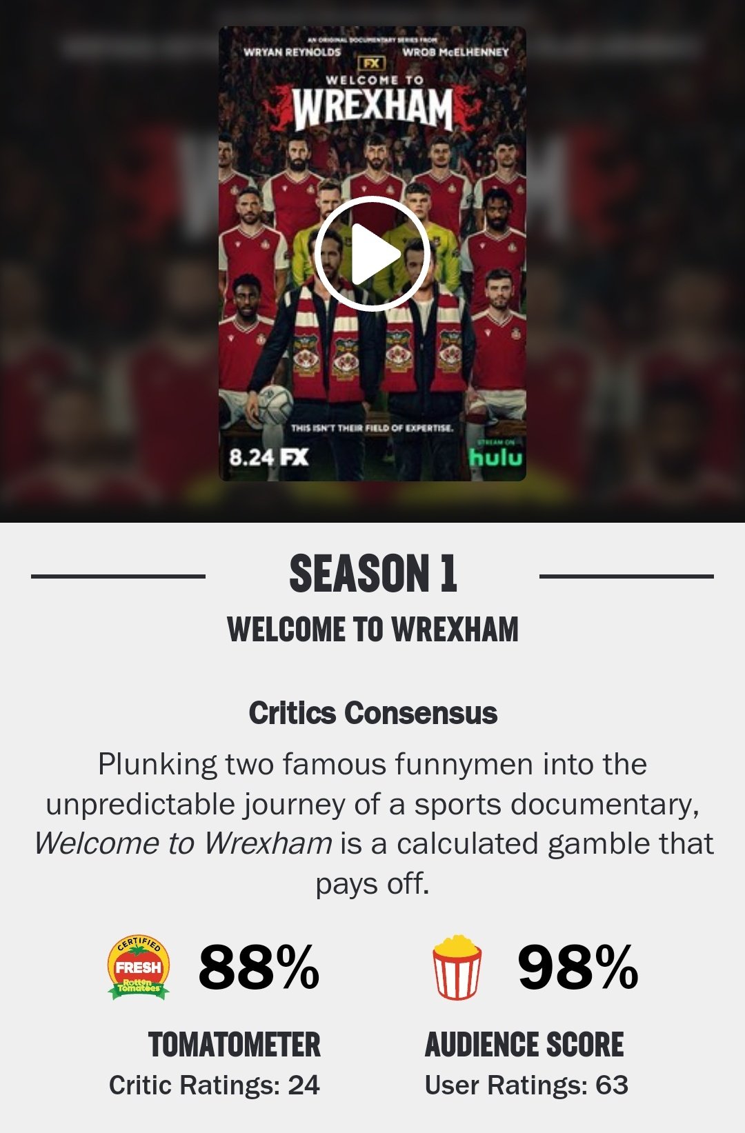 مسلسل Welcome To Wrexham يحصل على تقييم 88% عبر موقع Rotten Tomatoes
