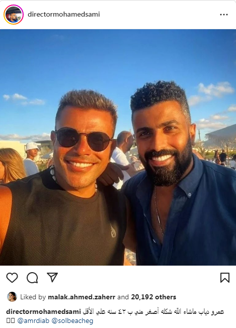 نشر المخرج محمد سامي عبر حسابه الشخصي على موقع الصور الشهير "انستجرام" صورة جديدة رفقة النجم عمرو دياب، من أحدث ظهور للثنائي.