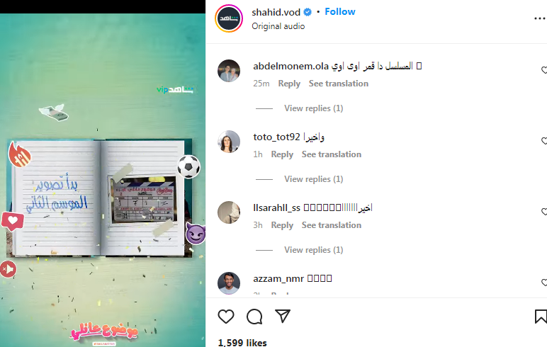 أعلنت منصة شاهد عبر حسابها الرسمي على موقع تبادل الصور إنستجرام عن بدء تصوير الموسم الثاني من مسلسل “موضوع عائلي” والذي من المقرر عرضه منصة شاهد VIP الرقمية.