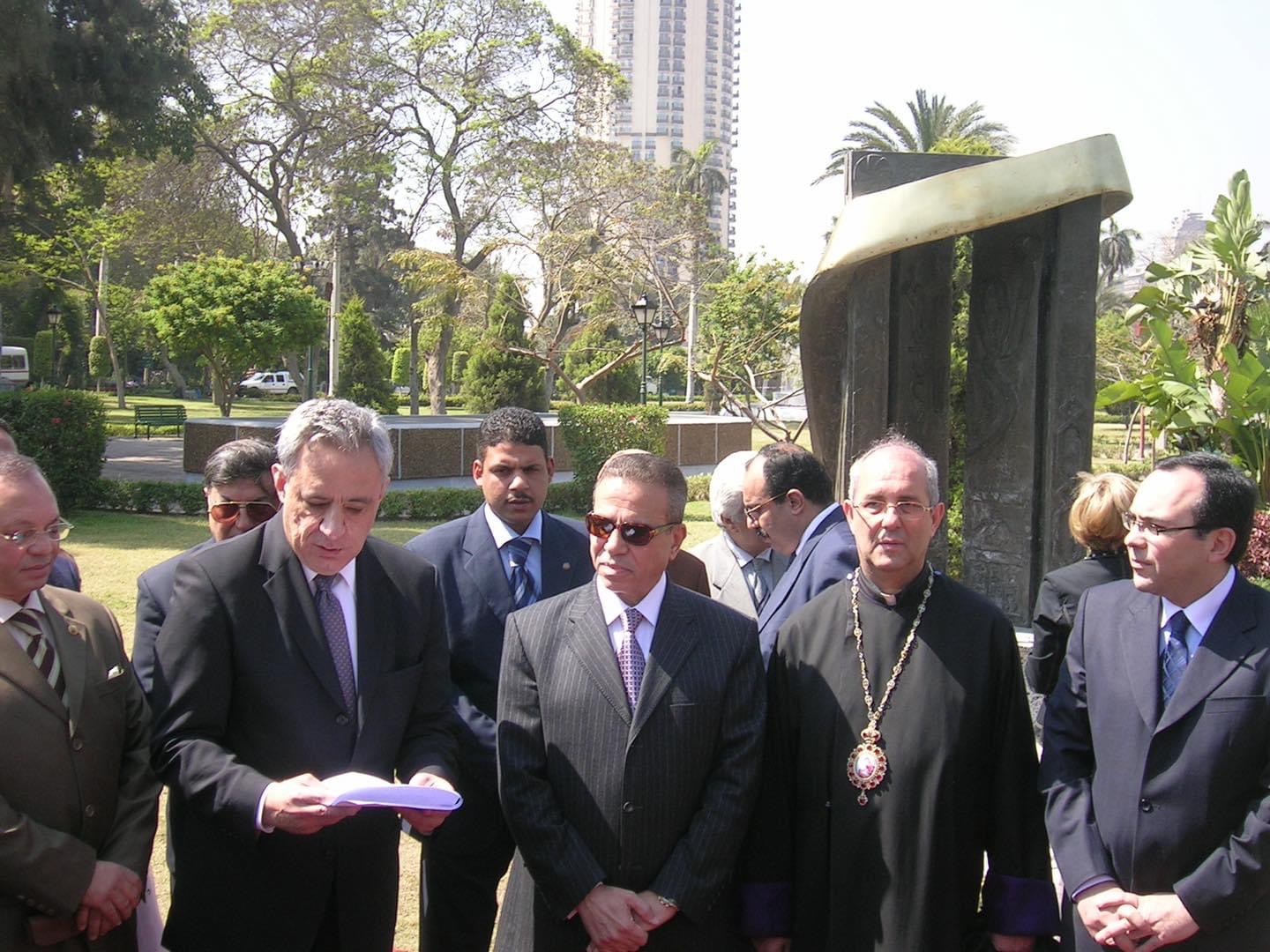 النصب التذكاري لـ "أصالة العلاقات التاريخية بين الشعبين المصري والأرمني" من عمل الفنان المصري الارمني السكندرى ساركيس طوسونيان وهو من مواليد الإسكندرية عام 1953 وخريج كلية الفنون الجميلة - قسم نحت – عام 1979.
