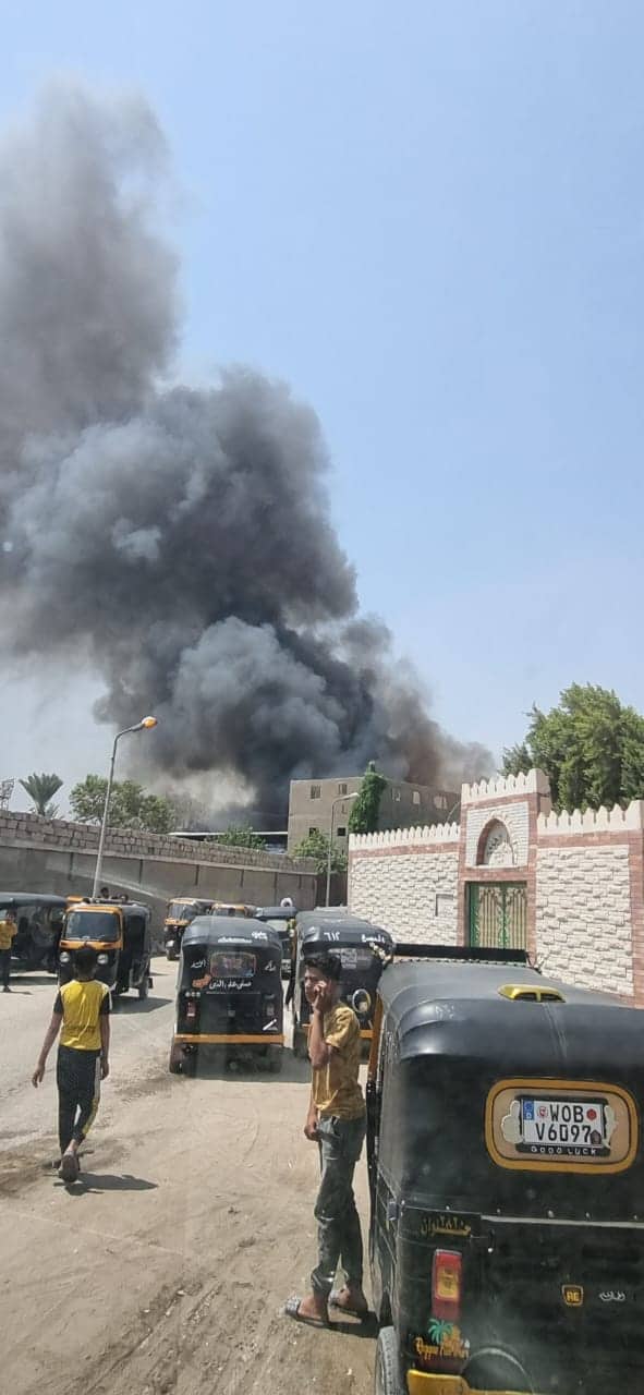 وتم فرض كردون أمني بمحيط الحريق لمحاصرته النيران ومنع امتدادها وجار عملية إخماد الحريق.