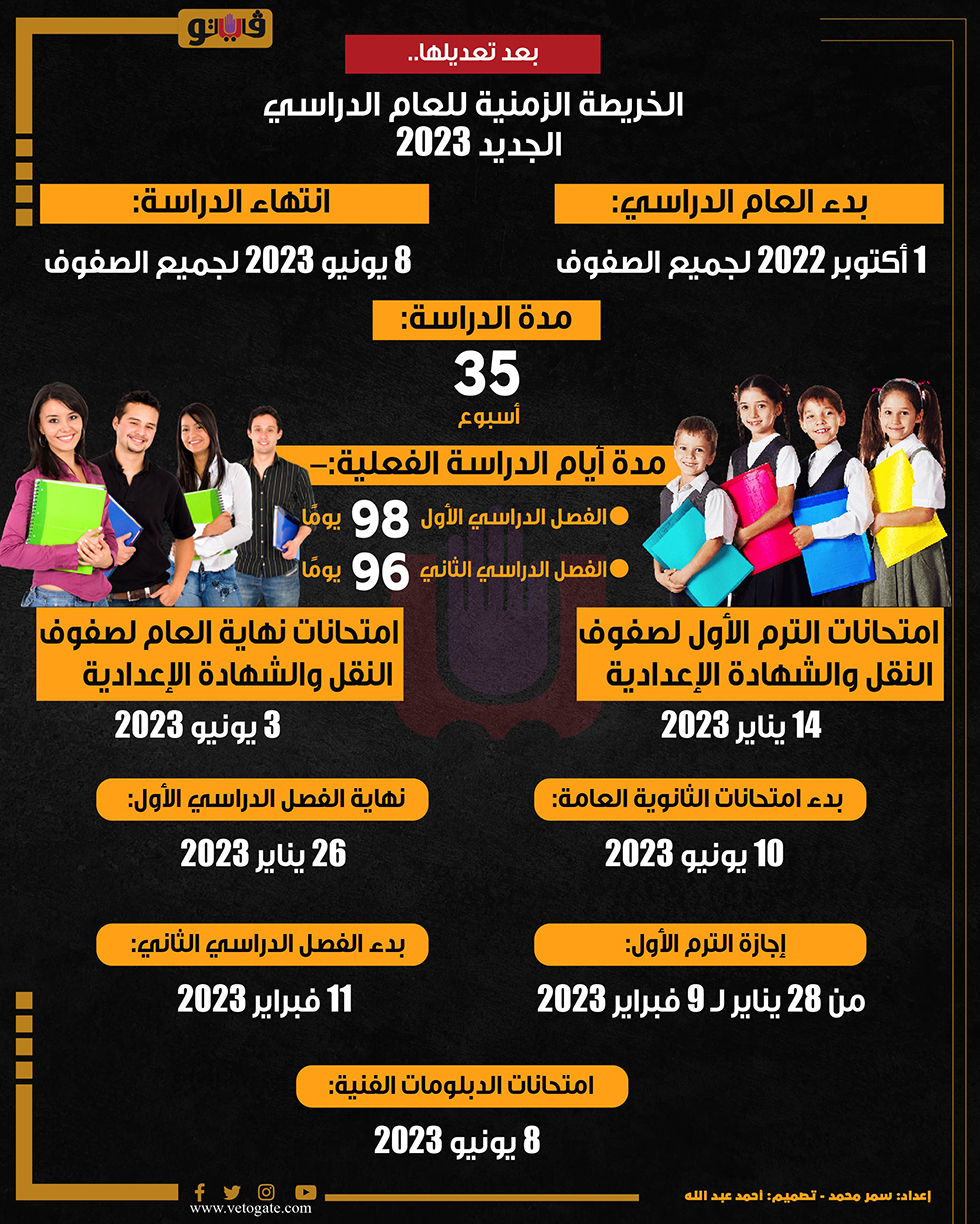 بعد تعديلها.. الخريطة الزمنية للعام الدراسي الجديد 2023 | إنفوجراف الأربعاء 31/أغسطس/2022 - 08:23 م 8/31/2022 8:23:32 PM الخريطة الزمنية للعام الدراسي الجديد 2022 سمر محمد شارك طباعة 18 حجم الخط شارك طباعة الثانوية العامة الخريطة الزمنية للعام الدراسى الخريطة الزمنية للعام الدراسي الجديد امتحانات الثانوية العامة امتحانات الدبلومات الفنية