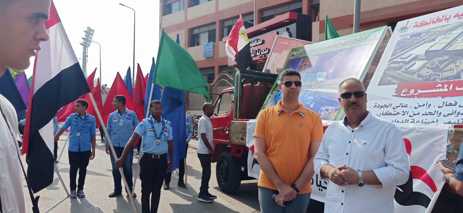 بدأ الاحتفال بمسيرة لسيارات تحمل أبرز انجازات ومعالم محافظة القليوبية يتقدمها علم مصر يحمله ابناء المشروع القومى للموهبة والبطل الأوليمبى، وفريق الموسيقى النحاسية لطلائع القليوبية، وفرق الجوالة رافعين الاعلام في مسيرة تشهد بعظمة وقوة شباب القليوبية.