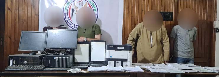 وعقب تقنين الإجراءات بالتنسيق مع قطاع الأمن العام ومديرية أمن كفر الشيخ تم إستهدافهم وأمكن ضبطهم بنطاق محافظة كفر الشيخ، وعُثر بحوزتهم على (عدد من التقارير الطبية "مزوره بالكامل"ممهورة على بياض بخاتم شعار الجمهورية المنسوب صدورها لعدد من المستشفيات والمراكز الطبية - بصمات خاتم شعار الجمهورية "المقلدة" ممهورة على أوراق كلك منسوب صدورها لعدد من الهيئات والجهات الحكومية – عدد من الخطابات خالية البيانات منسوب صدورها لإحدى الجهات الحكومية "مزوره بالكامل").