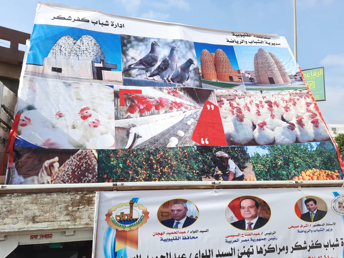 كما تم عرض بانرات حول مشروعات حياة كريمة والإنجازات التي تحققت بها بمركز شبين القناطر وإنجازات الشباب والرياضة بها.