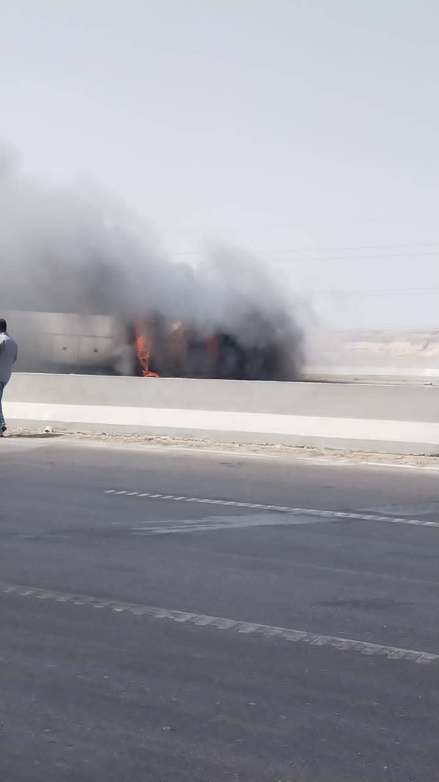 وبالفحص تبين تفحم الأتوبيس بالكامل وجار سؤال شهود العيان للوقوف على ملابسات الواقعة.
