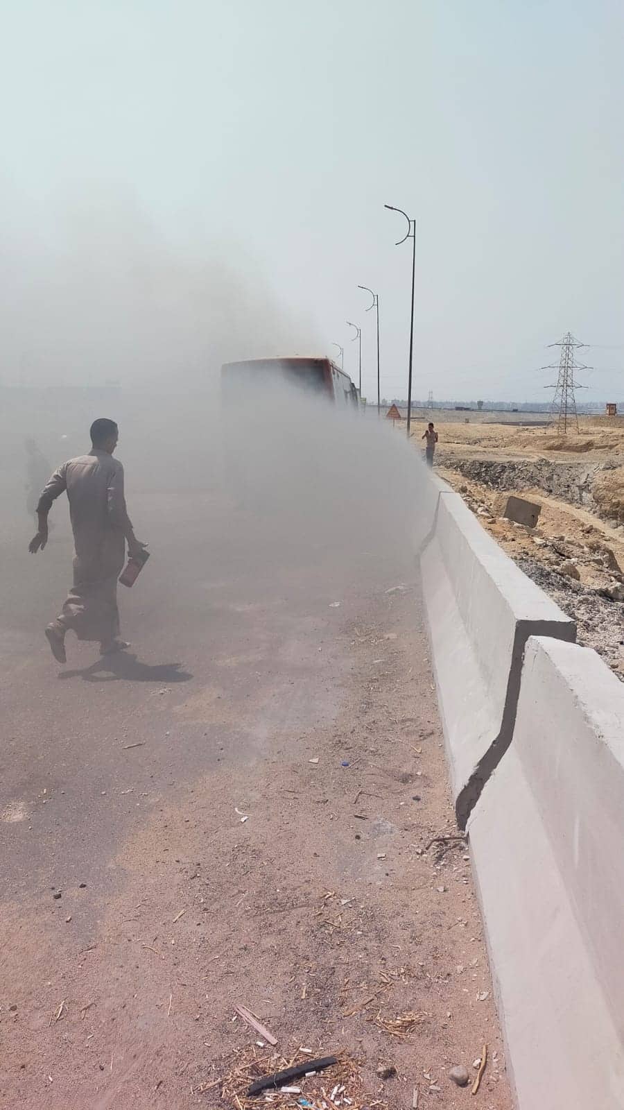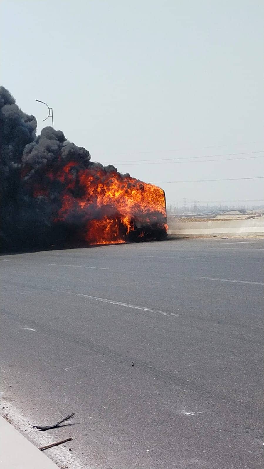 تفحم أتوبيس أعلى الطريق الأوسطى بحلوان | صور