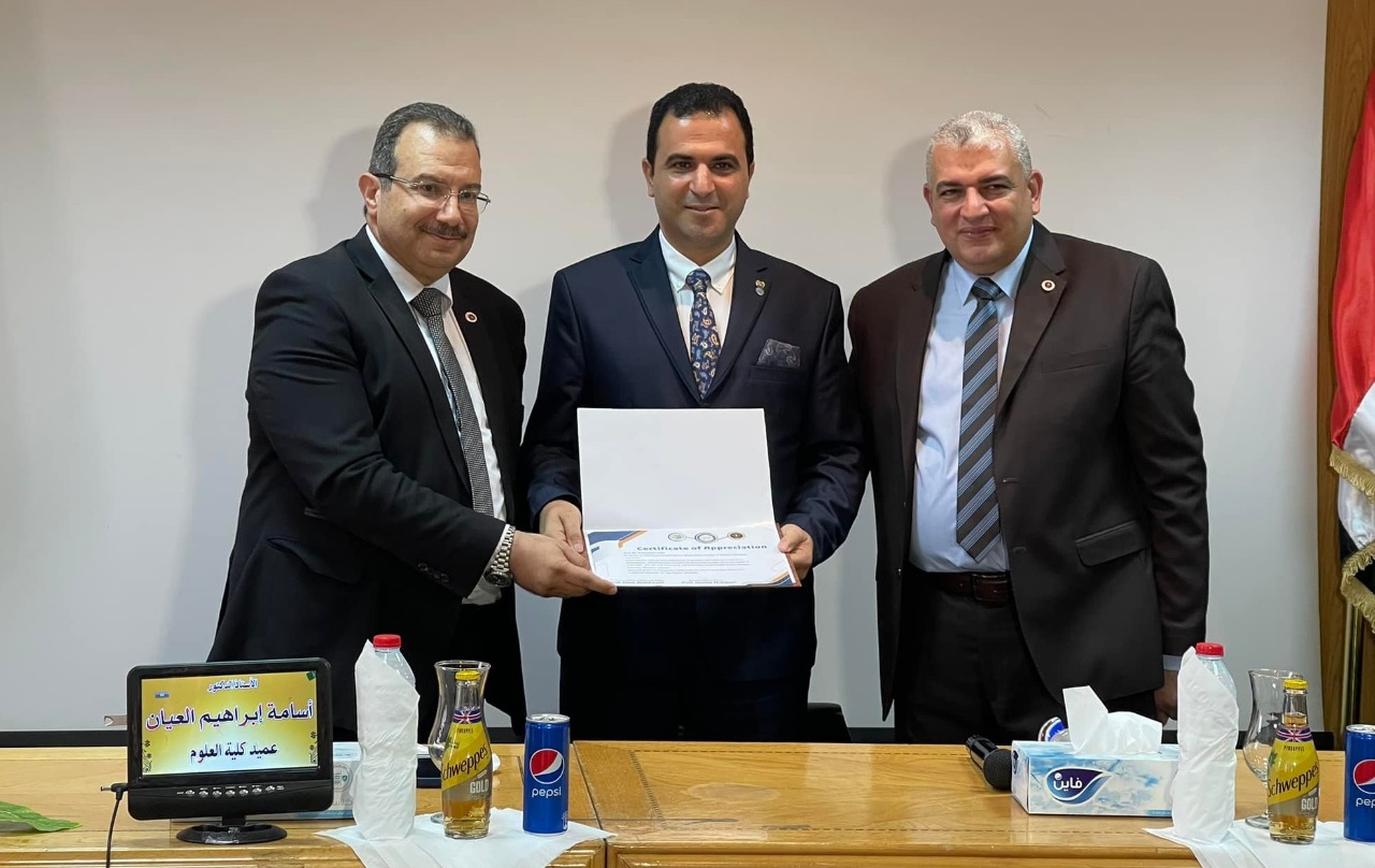 وعلى هامش حصاد قطاع الدراسات العليا والبحوث بكلية العلوم، كرم عميد ووكيل الكلية الدمتور محمد صلاح الباحث الرئيسي للمشروع، ضمن احتفالية تكريم الحاصلين على المشروعات والجوائز العلمية، تحت رعاية الدكتور محمود المليجي القائم بعمل رئيس الجامعة والدكتور أشرف حافظ نائب رئيس الجامعة للدراسات العليا والبحوث.