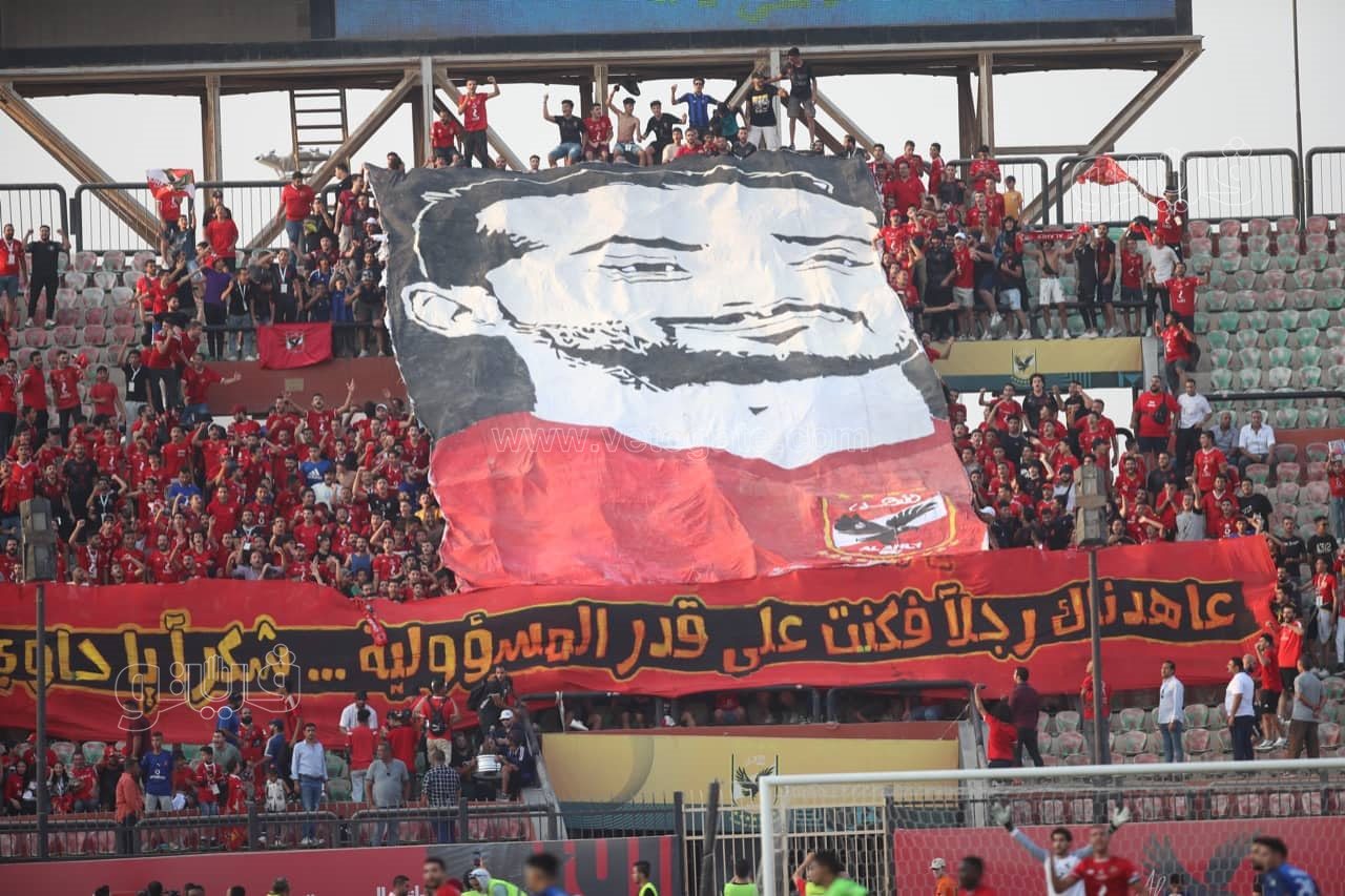 ورفع جمهور الأهلي لافتة في المدرجات مكتوب عليها: عاهدناك رجلا فكنت على قدر المسؤولية.. شكرا يا حاوي.