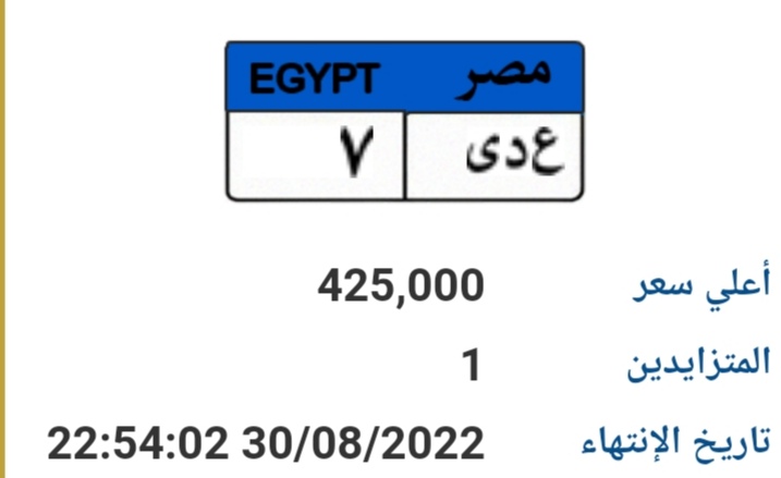 وقال مصدر مطلع: إن قيمة اللوحات "ع دي 7" بلغت 425 الف جنيه، "ول ي 777" بقيمة 85 ألف جنيه، "ر 77" بقيمة 450 ألف جنيه، "س ط 1" بقيمة 400 ألف جنيه.