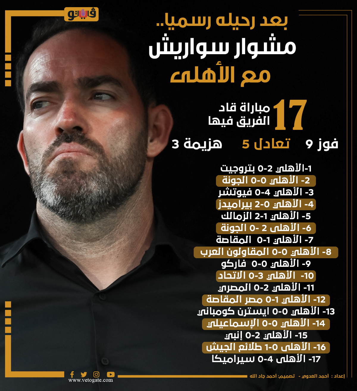 بعد رحيله رسميا.. مشوار سواريش مع الأهلى| إنفوجراف الأربعاء 31/أغسطس/2022 - 03:47 م 8/31/2022 3:47:09 PM سواريش أحمد العدوي شارك طباعة 18 حجم الخط شاهد.. كيف ودع لاعبو وجماهير الأهلي وليد سليمان | صور بعد نهاية الموسم.. ماذا قدم سواريش مع الأهلي في 17 مباراة؟ شارك طباعة ريكاردو سواريز الأهلي اخبار الأهلي اخبار الرياضة الاهلي اليوم