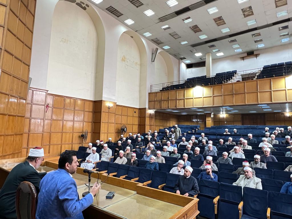 تواصل وزارة الأوقاف في اليوم الرابع على التوالي في الدورات التدريبية في "بناء الخطبة العصرية وفن الإلقاء"، لعدد (١٥٠) إمامًا من أئمة محافظات القاهرة والجيزة والقليوبية، بمحاضرة الأستاذ الدكتور عادل محمود عبد الخالق محمد أستاذ ورئيس قسم الثقافة كلية الدعوة الإسلامية بجامعة الأزهر، وذلك بمركز التدريب بمسجد النور بالعباسية، بحضور الدكتور أشرف فهمي مدير عام التدريب.
