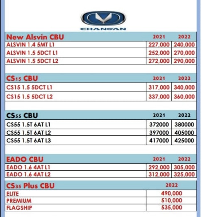 ويستعرض التقرير التالي اسعار سيارات شانجان بعد الزيادة التي تم تطبيقها بداية من اليوم الخميس مطلع شهر سبتمبر وهي كالتالي:-