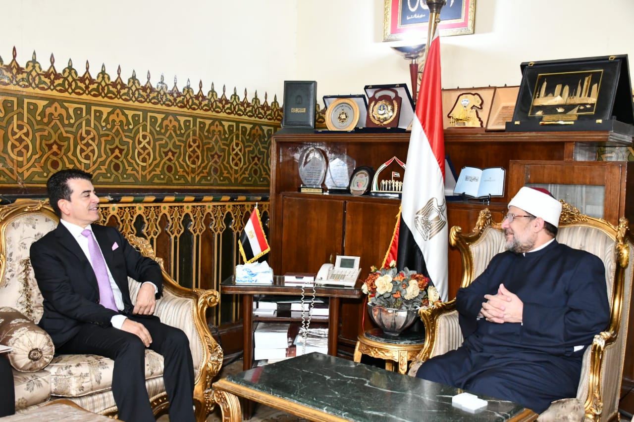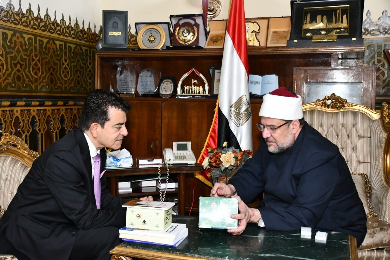 وخلال اللقاء أكد وزير الأوقاف على سعي الوزارة الدائم للتواصل الحضاري وترسيخ أسس الحوار البناء، والتعاون مع دول العالم الإسلامي لنشر صحيح الدين، وتصحيح المفاهيم، وتفكيك الفكر المتطرف، وذلك من خلال الإصدارات المتنوعة لوزارة الأوقاف، والتي بلغت (372) مؤلفًا ومترجمًا في قضايا تجديد الفكر الديني ونشر الثقافة الإسلامية المتنوعة، حيث قدمت وزارة الأوقاف مشروعات تثقيفية رائدة في مجال بناء الوعي وثقافة الطفل والحفاظ على الهوية، تتناول القضايا العصرية برؤى مستنيرة واعية، مؤكدًا على أهمية الثقافة في تشكيل الوعي وتقدم الأمم.