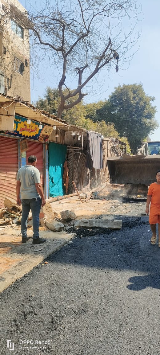 وفي حي بولاق الدكرور تم إزالة عدد من التعديات للمحال والمنشأت التجارية على الطريق العام بشارع ناهيا والمزلقان وإزالة كشك وجمالون مخالفين بشوارع البوسطة ال عامر ومخزن الأنابيب.